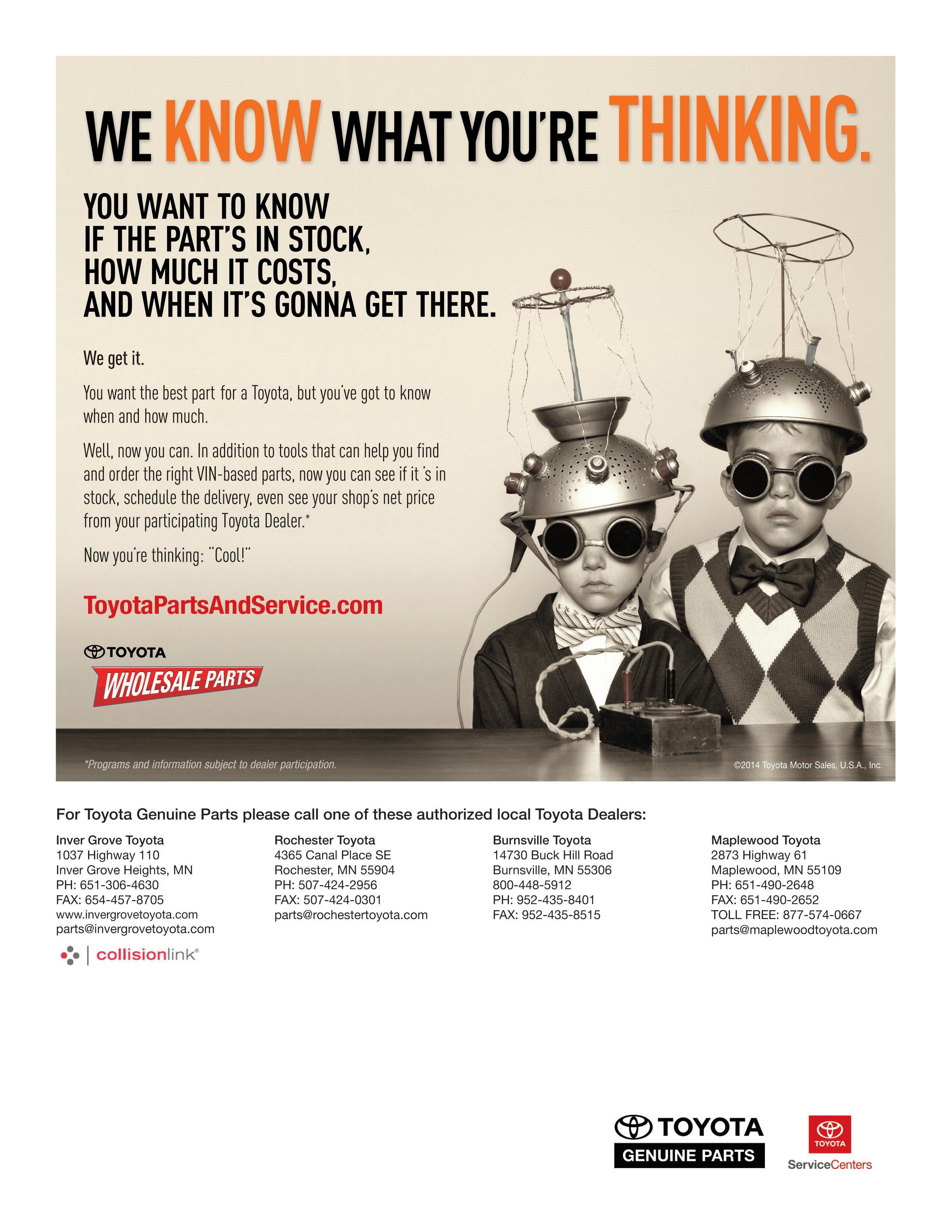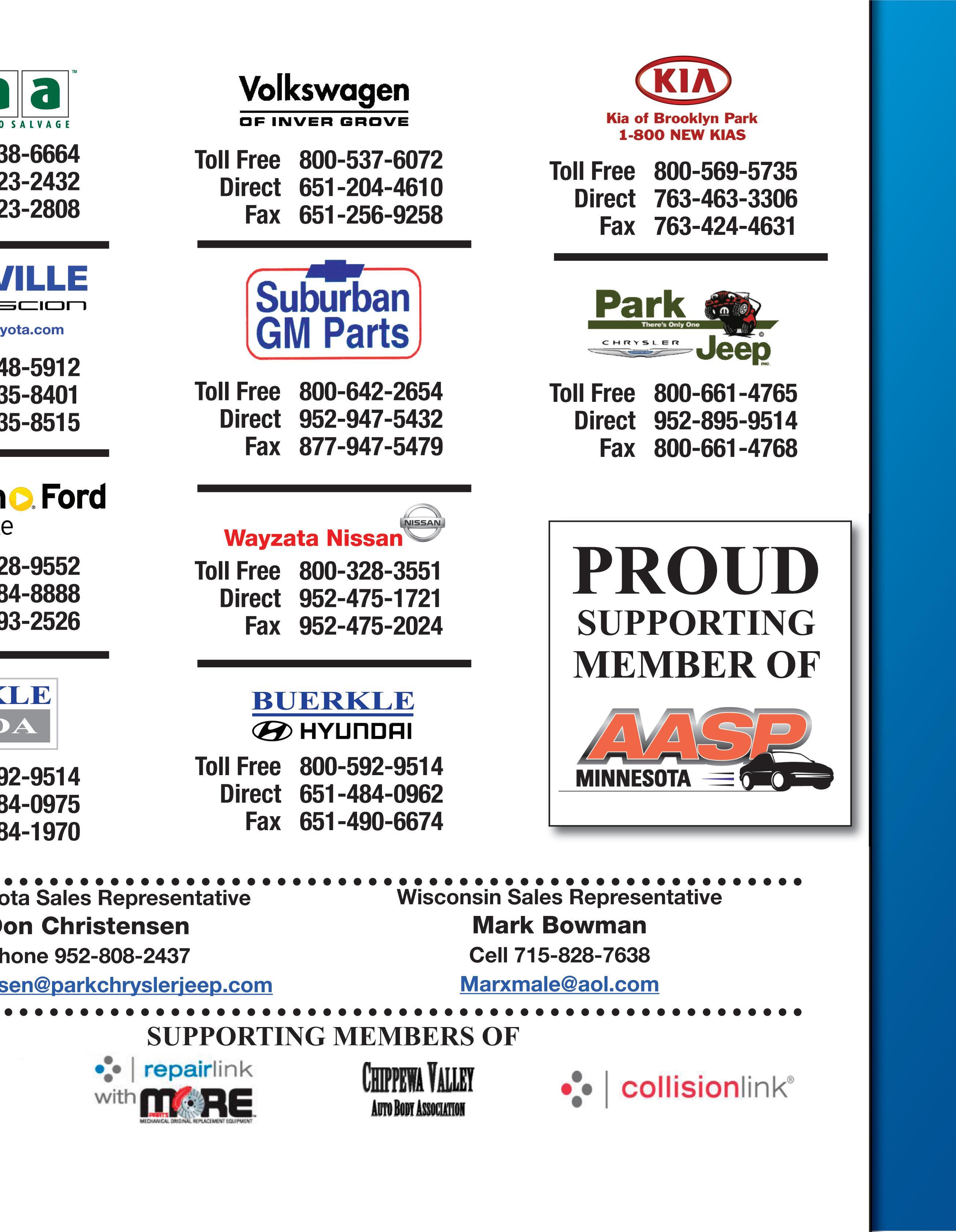 Registration and payment for golfers and/or sponsors can be found on the golf outing’s website, www icargolf com This is a great opportunity for vendors to market their business and support the industry while enjoying a round of golf with industry leaders. Those who can’t participate can help by providing door prizes or auction items by contacting tournament directors Shawn Collins at smcollins@mmm.com or (612) 508-8222 or Jamison Randall at jrandall@latuffbrothers.com or (651) 796-8003.