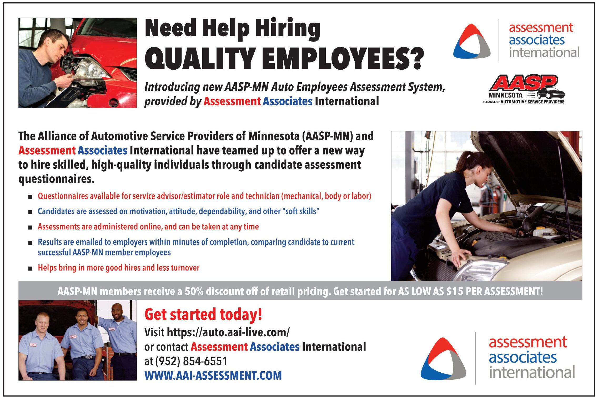 Designed to help facilitate and enhance hiring decisions AASP-MN members receive 50 percent off retail price and starts as low as $15 per assessment