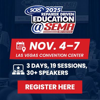 Registration is now open to automotive and collision industry professionals for the 2025 SEMA Show and SCRS’ RDE, IDEAS Collide and OEM Summit at bit.ly/2025SEMAShow; get the best possible deal on your collision education with the SCRS Full Series Pass, which includes access to one regular session in each available RDE time slot, the IDEAS Collide Showcase, all three sessions of the OEM Collision Repair Technology Summit and one ticket to the SCRS Sky Villa Afterparty. And in yet another update to this year’s SEMA, anyone who forgot to include educational sessions during their initial registration can go back and add classes via the registration resource center.