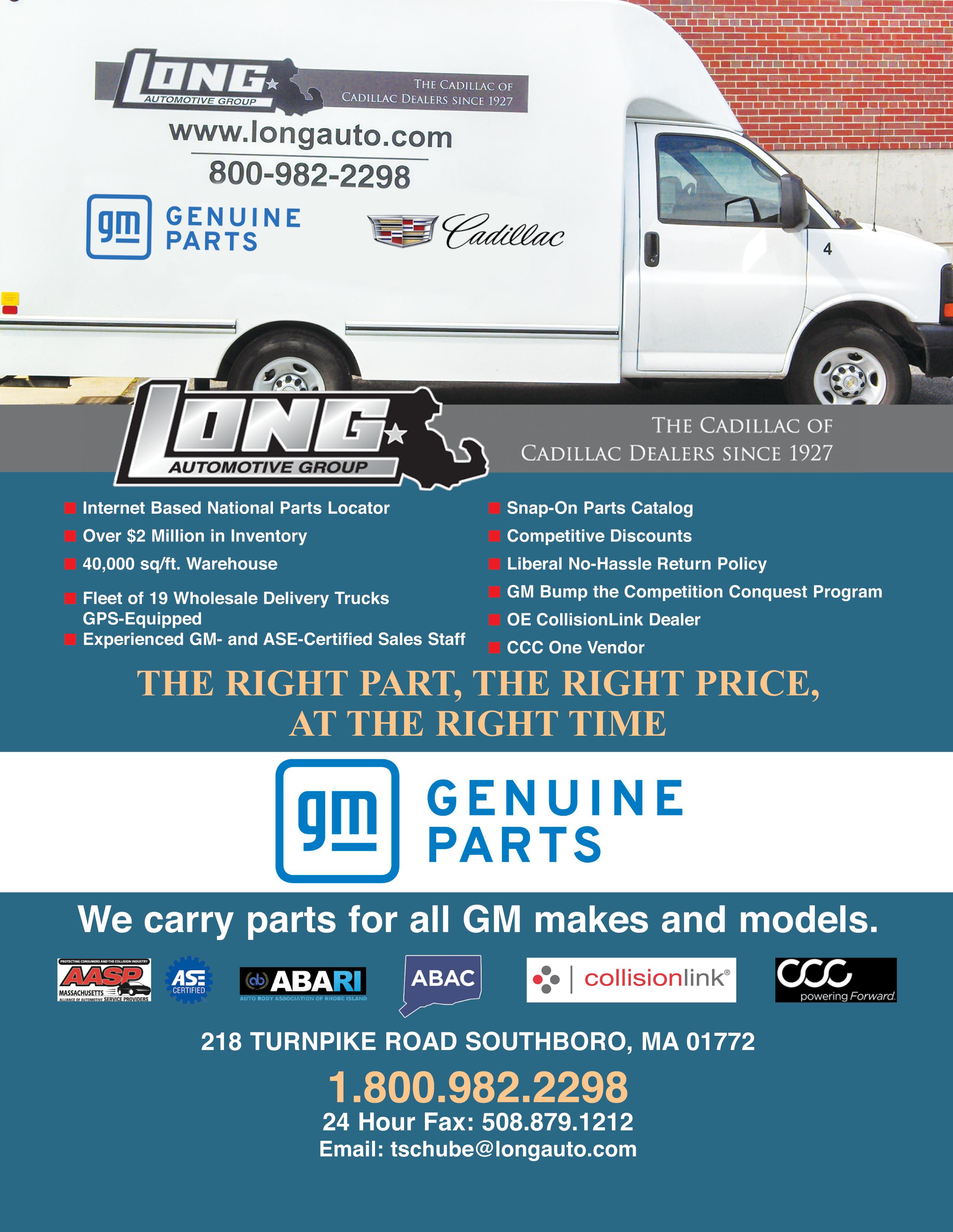 “Customer service is tops for me,” agreed Matthew Ciaschini (Full Tilt Auto Body; West Hatfield). “Great parts suppliers answer our calls and are available when we need them. They have a better understanding of our industry and realize that we need the correct parts as soon as possible. They are willing to locate parts when they don’t have them, and