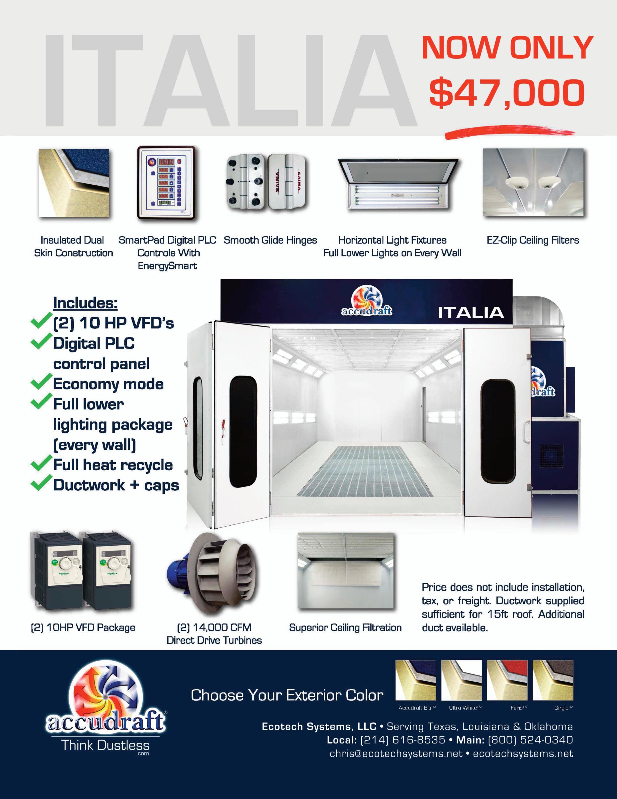 With 28 years of success already under its belt, there’s no doubt Ecotech Systems will continue to lead the paint booth market in the southeast territor y and ser ve body shops of all sizes. TXA
