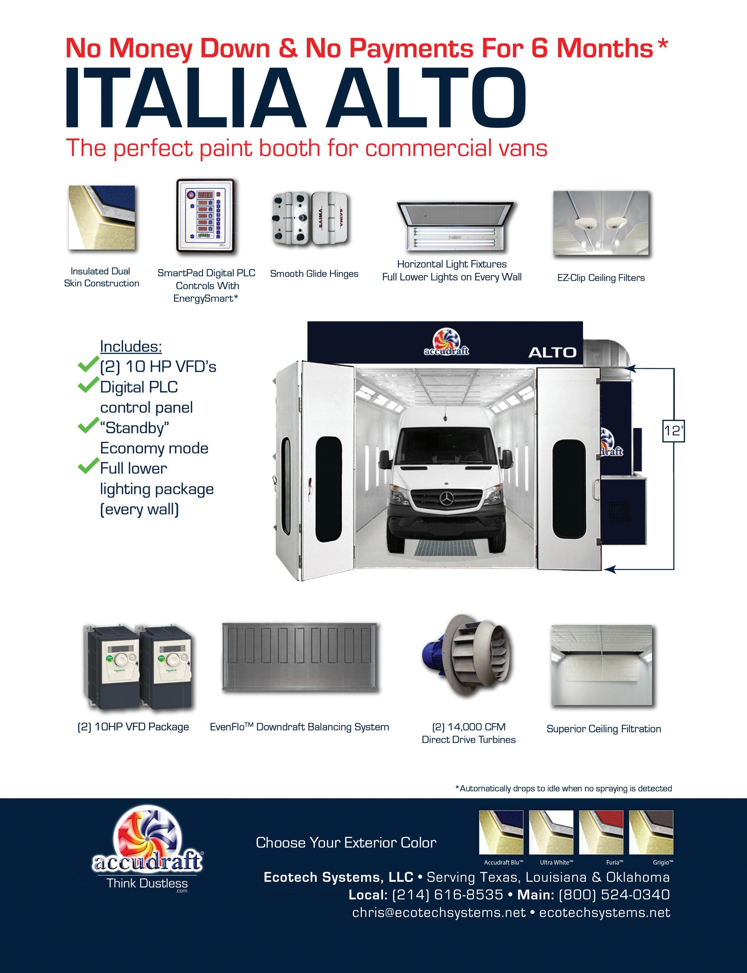 To answer these questions before acquiring two Chronotech spray booths and a prep deck from USI ITALIA back in 2004, Collision Center Manager Kevin McIllveen at Russell & Smith Body Shop in Houston, TX spent six months studying the market. He was looking for the best booths that matched his needs to use in a brand-new 36,000 sq. ft. facility that the company built from the ground up.