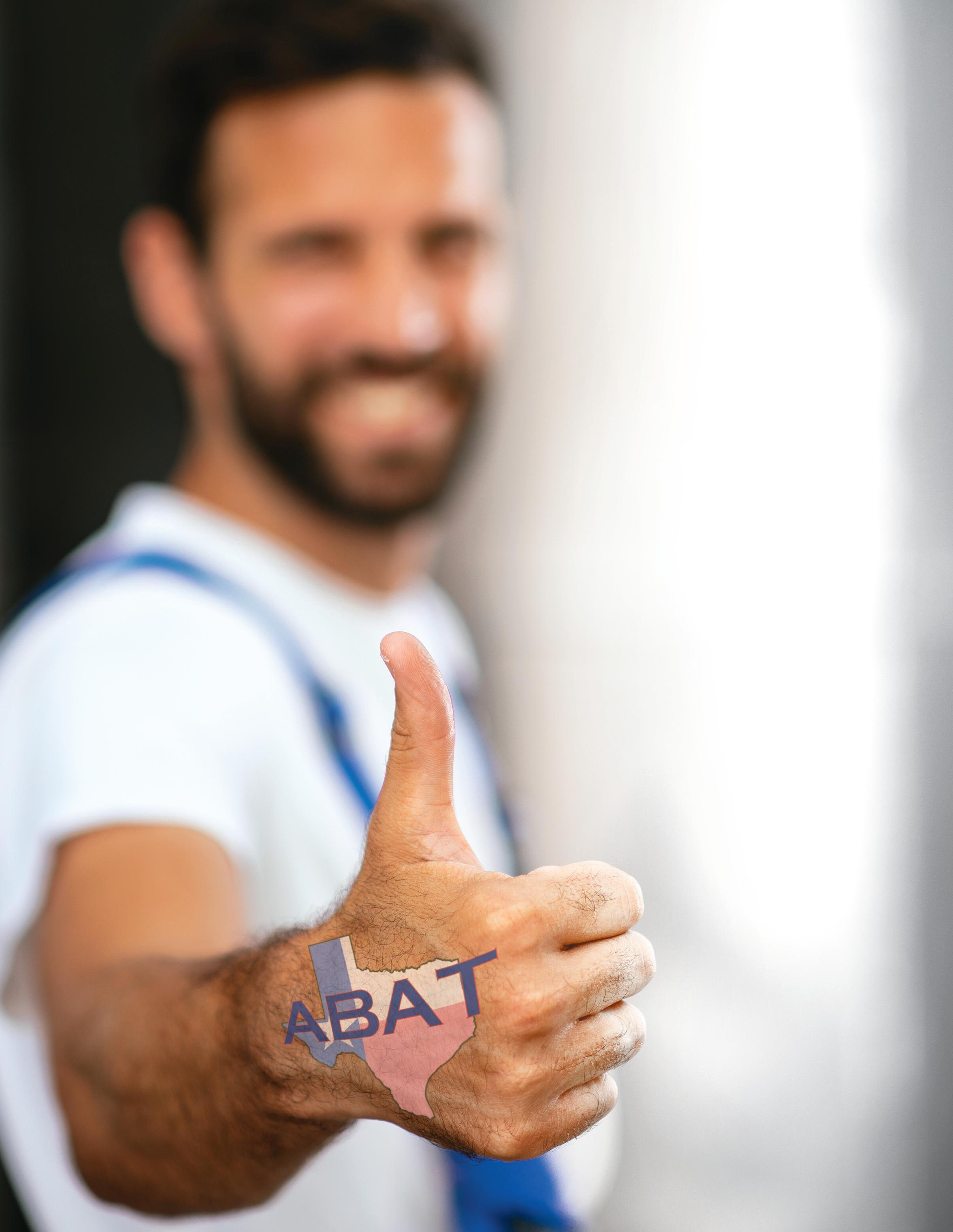 is has always been one of the main philosophies driving ABAT ’ s work in the Lone Star State. rough grassroots advocacy for shops and maintaining contact with key national industr y groups, the association has remained active throughout the year in staying one step ahead of the ups and downs affecting repair facilities and the consumers they work to protect Fortunately, these actions have resulted in increased membership and a growth in positive feedback from member shops as a rough year carries on.