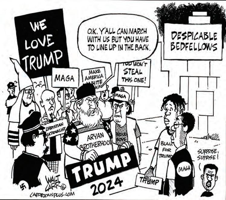 committing massive business fraud. Yet Trump boasted about his legal battles, suggesting that the Black community supports him because they identify with the discrimination he claims to face. see Trump, page 7A
