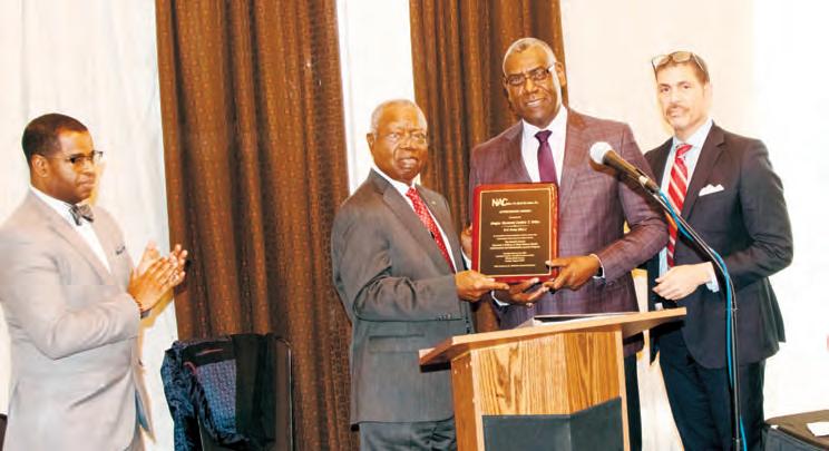 League. Others contributing to the program included the Norfolk Sheriff Honor Guards, who presented the colors; Derrick Paramore, Foundation financial secretary who led the Pledge of Allegiance; and LaVerne Wiggins Reed who sang the Negro National Anthem by A. Keith Chapman, Foundation president, Timothy lamb,