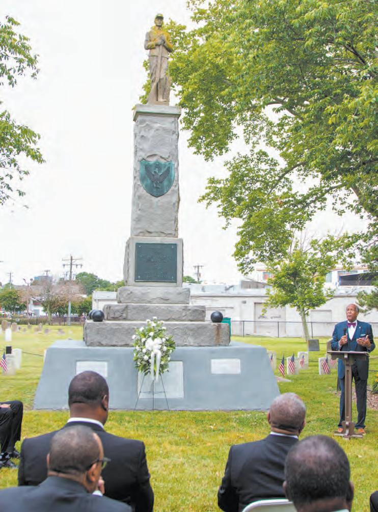 James E. Fuller (18461909), a former slave and Norfolk’s first Black Councilman, led the campaign to erect the monument. His committee raised funds to begin the monument in 1906. The cornerstone was laid on Decoration Day the same year. see page 1B
