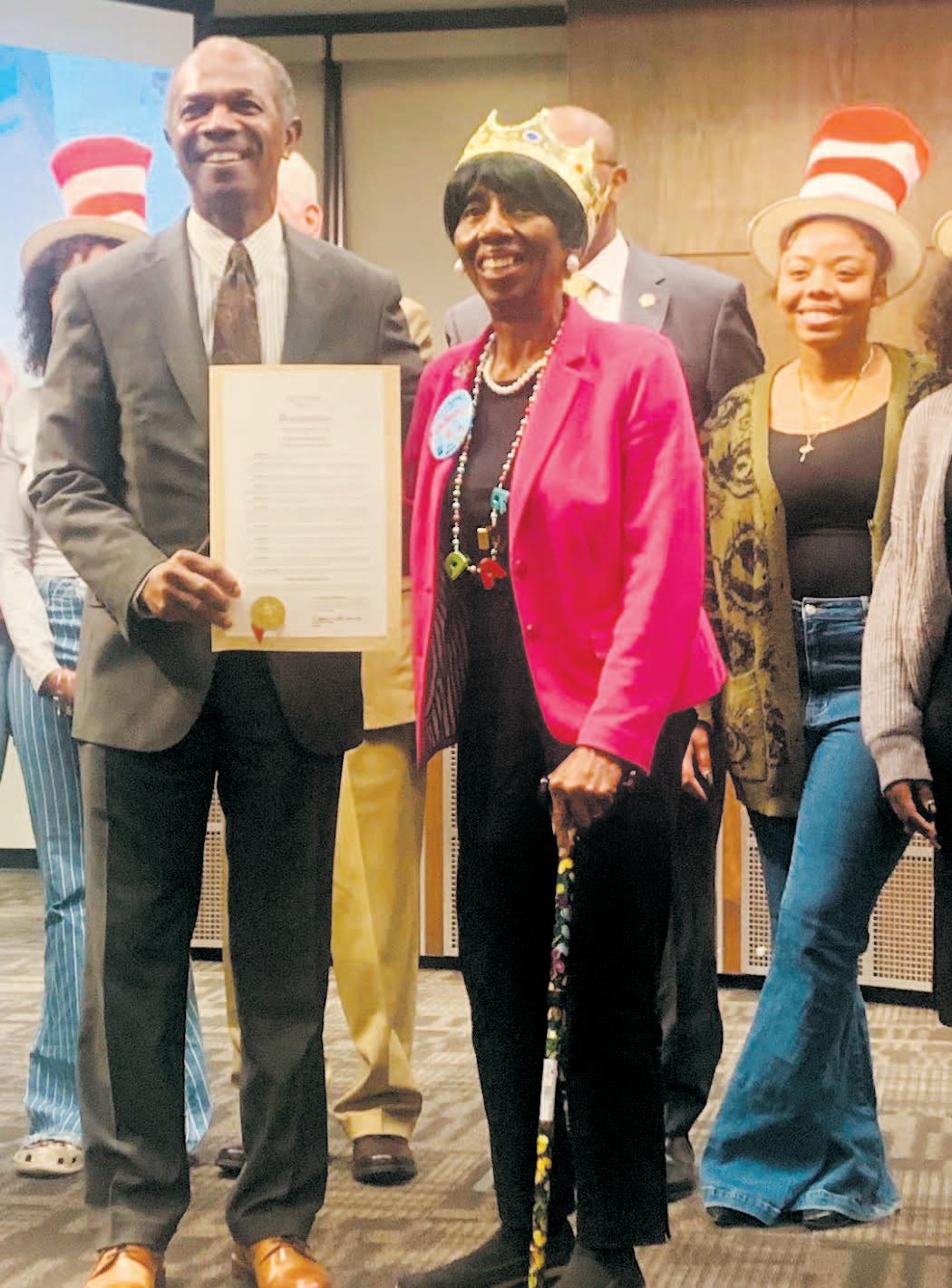 Retired educator Gwyndolyn Lomax, along with other teachers and four Hampton University students, were also recognized for promoting the upcoming Lights Out After School Day on