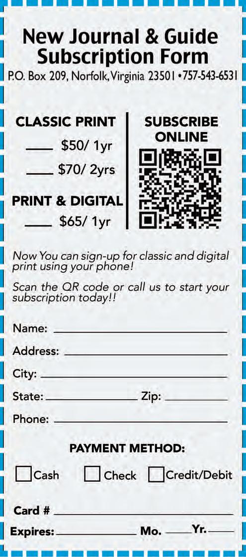 Serving Norfolk, Portsmouth, Virginia Beach, Chesapeake, Suffolk & The Peninsula Publishing since 1900 ... that no good cause shall lack a champion and evil shall not thrive unopposed. www.thenewjournalandguide.com