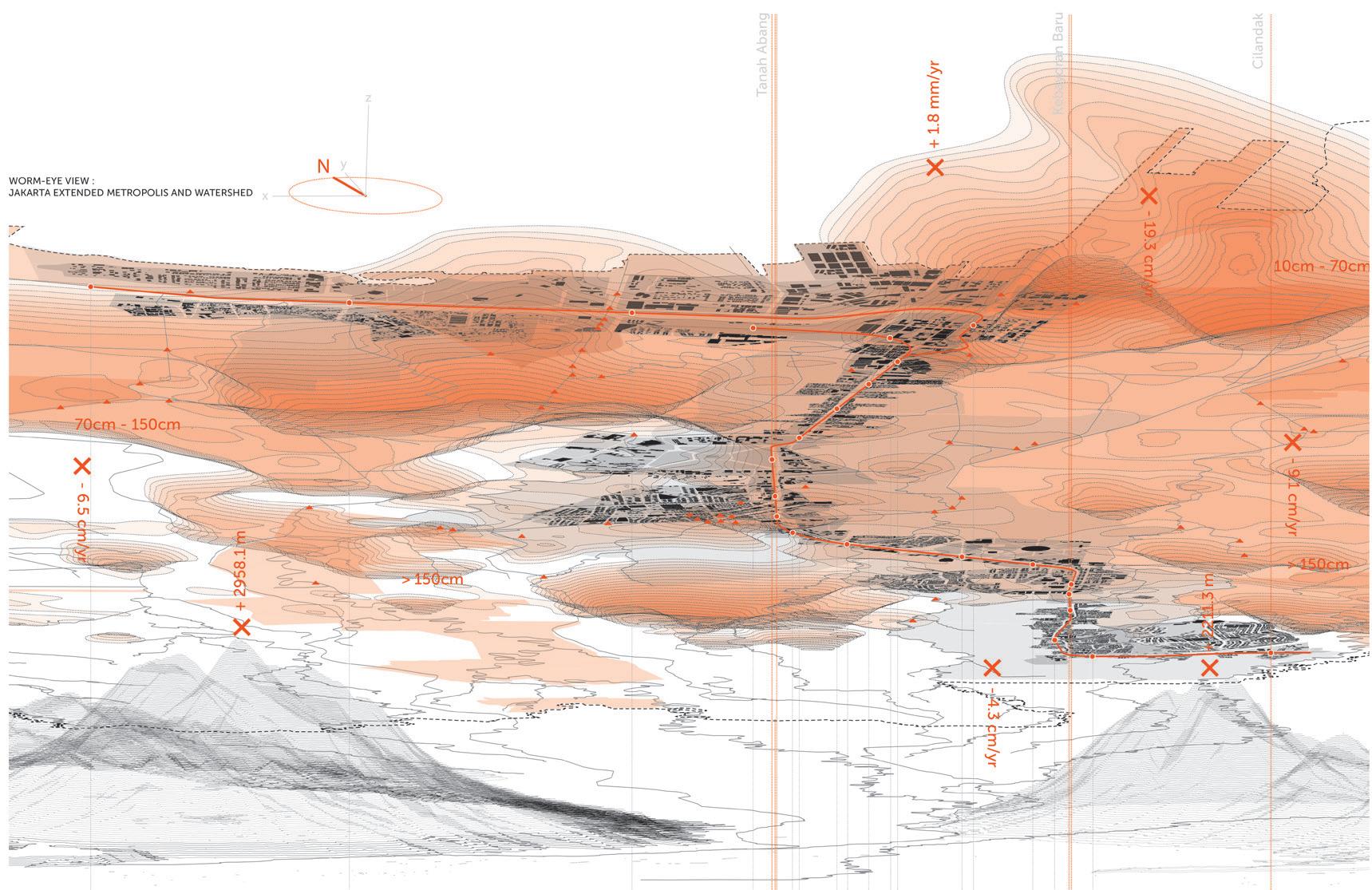 The subsidence effect of Jakarta is worsened by the sheer weight of Jakarta’s urban sprawl. Economic development in recent decades has transformed the city’s traditional low-rise silhouette into a thickening forest of high-rise towers whose weight crushes the porous ground underneath .