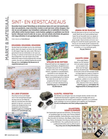 SINT- EN KERSTCADEAUS December komt eraan! Sinterklaas en de kerstman laten zich vast niet weerhouden door een pandemie, maar misschien moeten ze wel wat meer online shoppen. Dus zijn we op zoek gegaan naar betaalbare cadeautjes die ze makkelijk of misschien zelfs alleen online kunnen kopen. Leuke boeken, gadgets en spelletjes voor bij de kachel. Allemaal rond of onder de 20 euro, met een enkele uitschieter die gewoon niet mag ontbreken in een goedgevulde zak of onder de kerstboom. Onder redactie van Femke Welvaart
