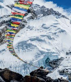 Stoepa’s en gebedsvlaggen, typische elementen op foto’s uit de Himalaya. In dit themanummer lees je verhalen over expedities en trektochten in het hoogste gebergte ter wereld.