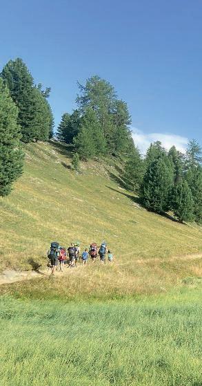 smalle straatjes zijn weg om de berg heen vindt. In het volgende dal gaan we een stukje met een kleine gondel omhoog. De route loopt daarna verder omhoog en aan eind van de middag stappen we de Capanna Alpe Salei binnen. Alweer een prachtige plek, met lieve, gastvrije mensen. We zijn de enigen die blijven slapen en krijgen buiten een exclusief diner geserveerd met de beste polenta, kazen, salade en zelfgebakken taart met slagroom. De verse munt wordt in ons bijzijn langs de muur geplukt.