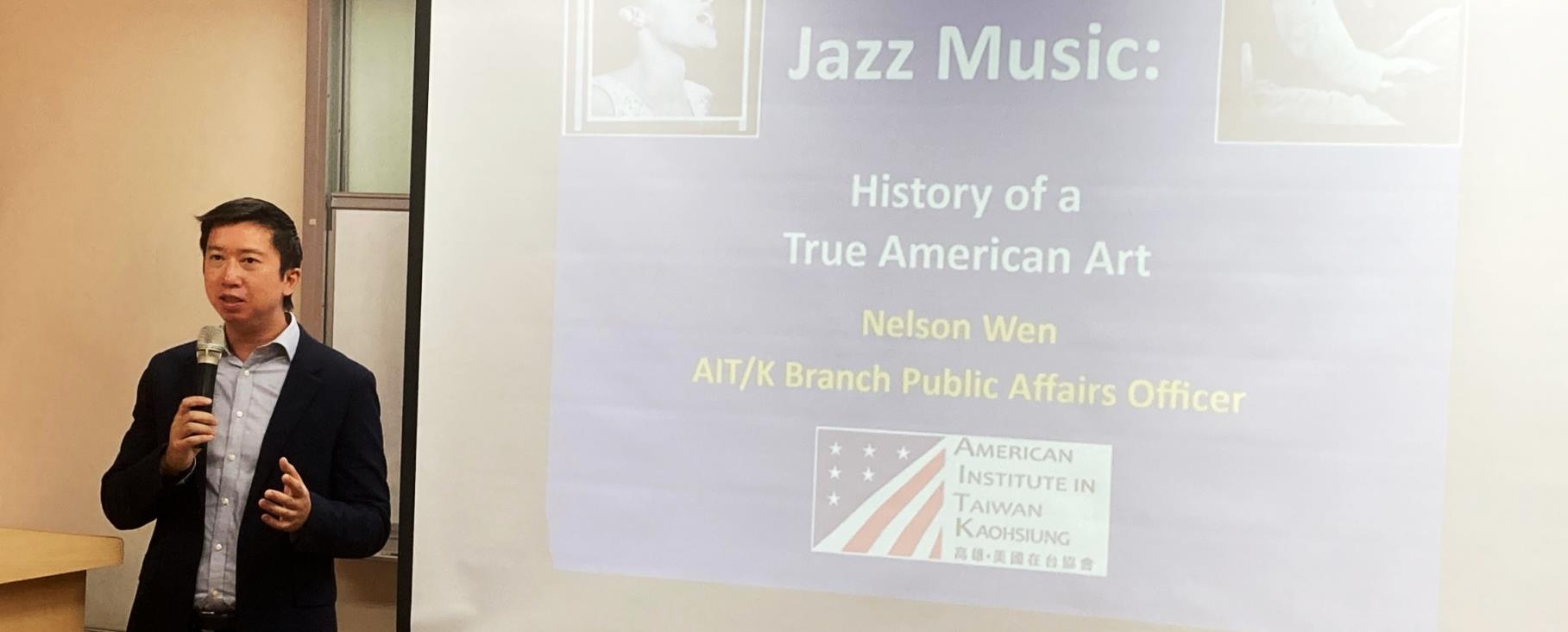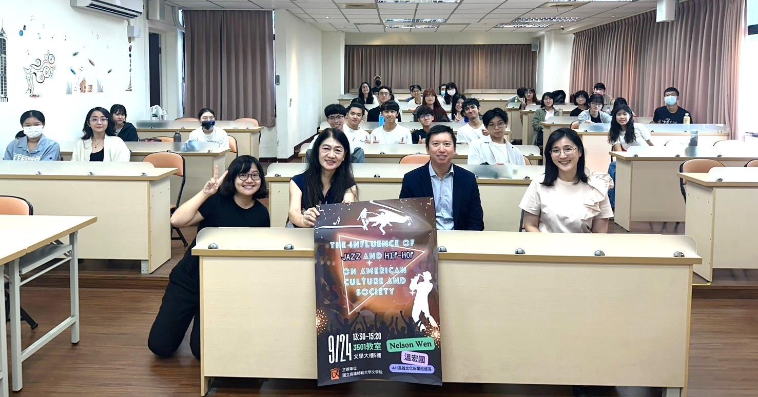 月24日舉辦「The Influence of Jazz and Hip-Hop on American Culture and Society」講座,此次活動在學校支 持下順利進行,吸引眾多對美國文化與 音樂感興趣的師生到場參與。講座特別 邀請美國在台協會(AIT)高雄分處文化