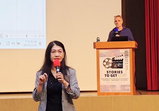 ▼李院長以中文翻譯演講內容 對應著他的渴望,不斷地透過生命中所 有偶遇,歷經的種種,逐步探求、找尋 隱藏在失焦鏡頭下的真實自我。