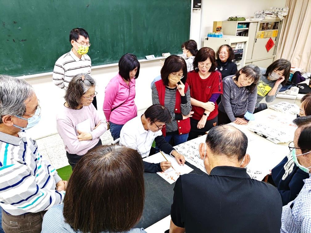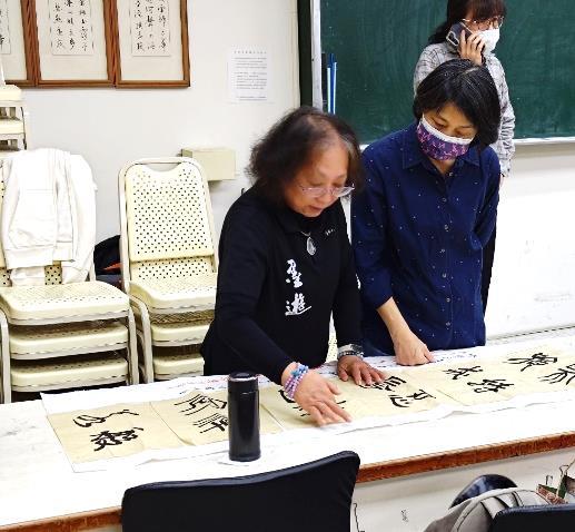 八卦茶席活動過程中,書法大師蕭 季慧以雙管書法表演為文學院帶來祝福,