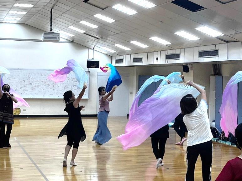 左右開弓的技巧配合行雲流水的字跡, 完美展現傳統文化的優雅之美,贏得現 場熱烈掌聲。柯嵐馨老師帶領古典舞班 的同學,以優雅的舞姿帶來別具韻味的 視覺享受,林虹妌老師的古箏演奏則將 音樂的情韻與茶席氛圍融為一體,蔡沁 恩同學呈現的太極拳劍表演,以力與美 的完美融合展示了傳統武術的精髓。而 第二屆「有情微書寫.尋訪文學院」創作 徵選比賽頒獎典禮,則透過表彰傑出的 文學創作,激勵更多學生投身文學創 作,展現文化傳承的力量。