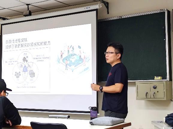 首先,朱教授向我們說明了「新地理 學(NeoGeography)發展的社會背 景。由於近年來科技的發展,從個人電 腦、智慧型手機到各種穿戴裝置,不斷 改變我們的生活方式。而,讓人與人、 人與物之間的連結更加緊密,社交媒體 與共享經濟等新興趨勢改變了網路化的