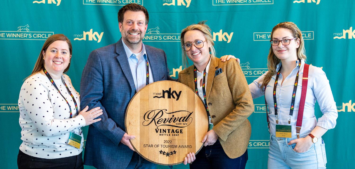 Revival Vintage Spirits & Bottle Shop’s Shannon Smith and Brad Bonds were then presented with the meetNKY 2022 Star of Tourism Award, which honors “ongoing contributions to travel in tourism” in the region. Kirkpatrick then returned to the stage to discuss meetNKY’s 2023 initiatives; Northern Kentucky native turned aspiring Nashville musician Chace Saunders closed the event with a musical medley of original and cover songs.
