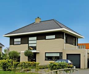Juist de combinatie van verschil-lende bouwstijlen maakt de woning anders. Denk aan een houten gevelbekleding samen met een slanke strakke dakgoot en contrasterend metselwerk.