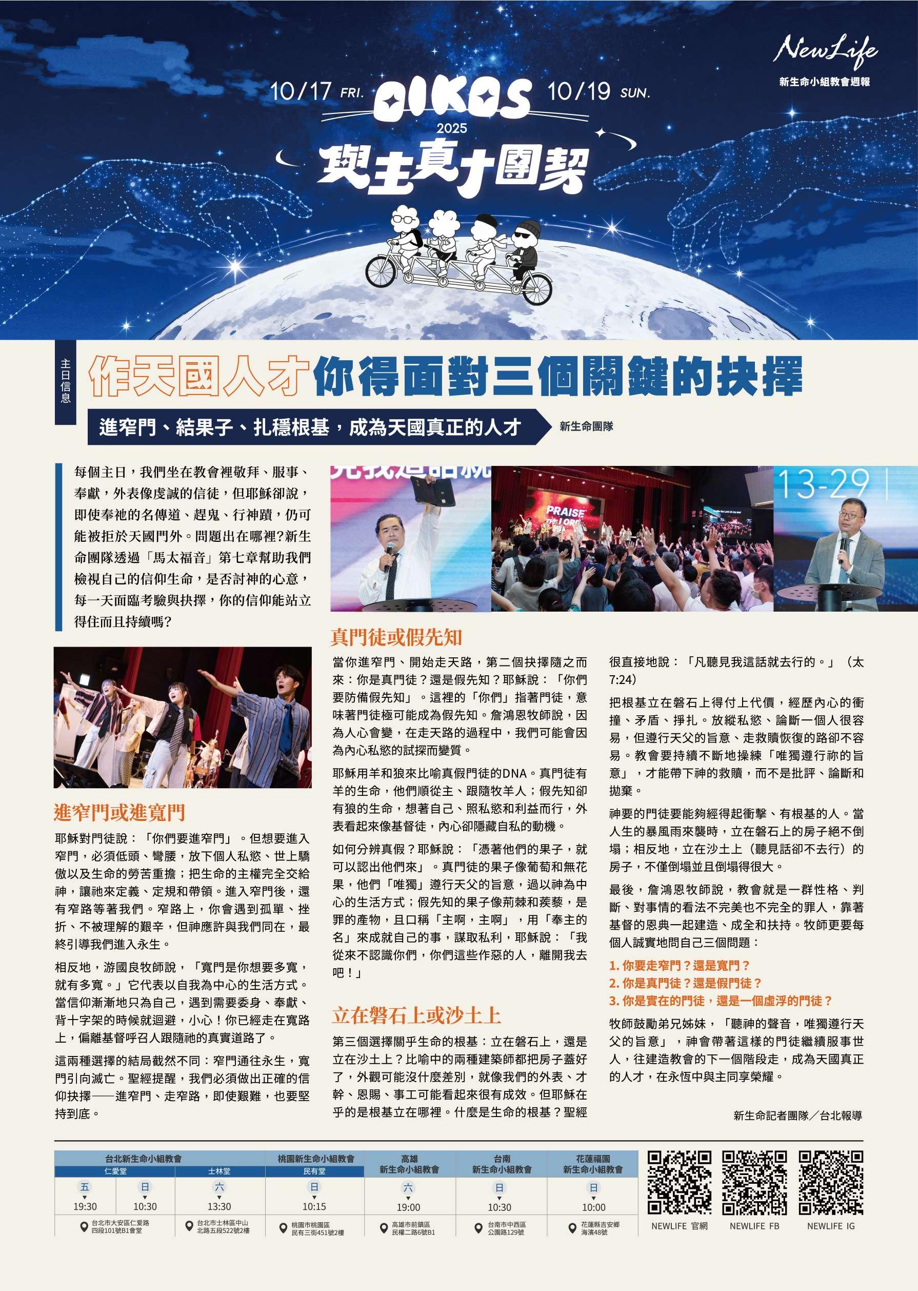 10/17-10/19《 OIKOS,與主真十團契 》新生命小組教會週報