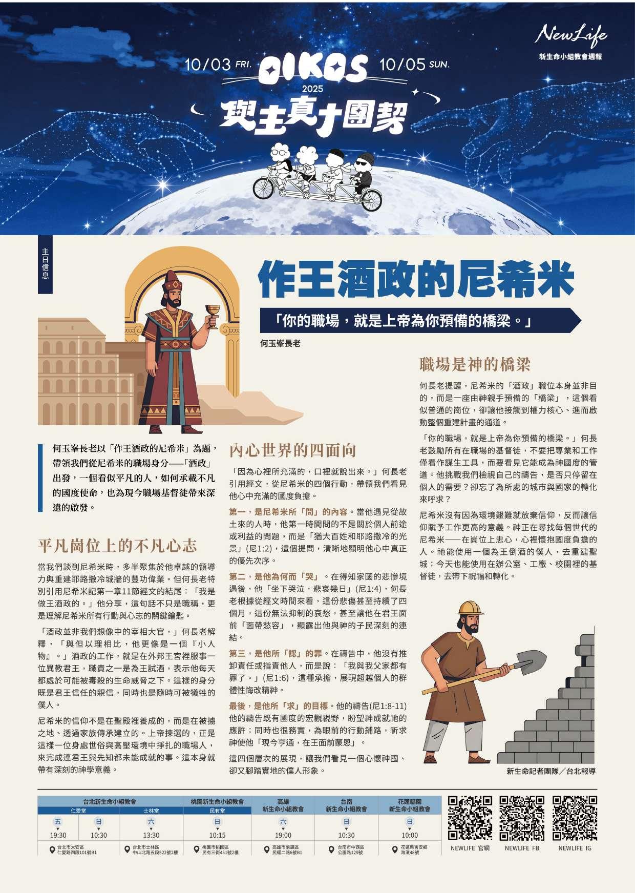 10/3-10/5《 OIKOS,與主真十團契 》新生命小組教會週報
