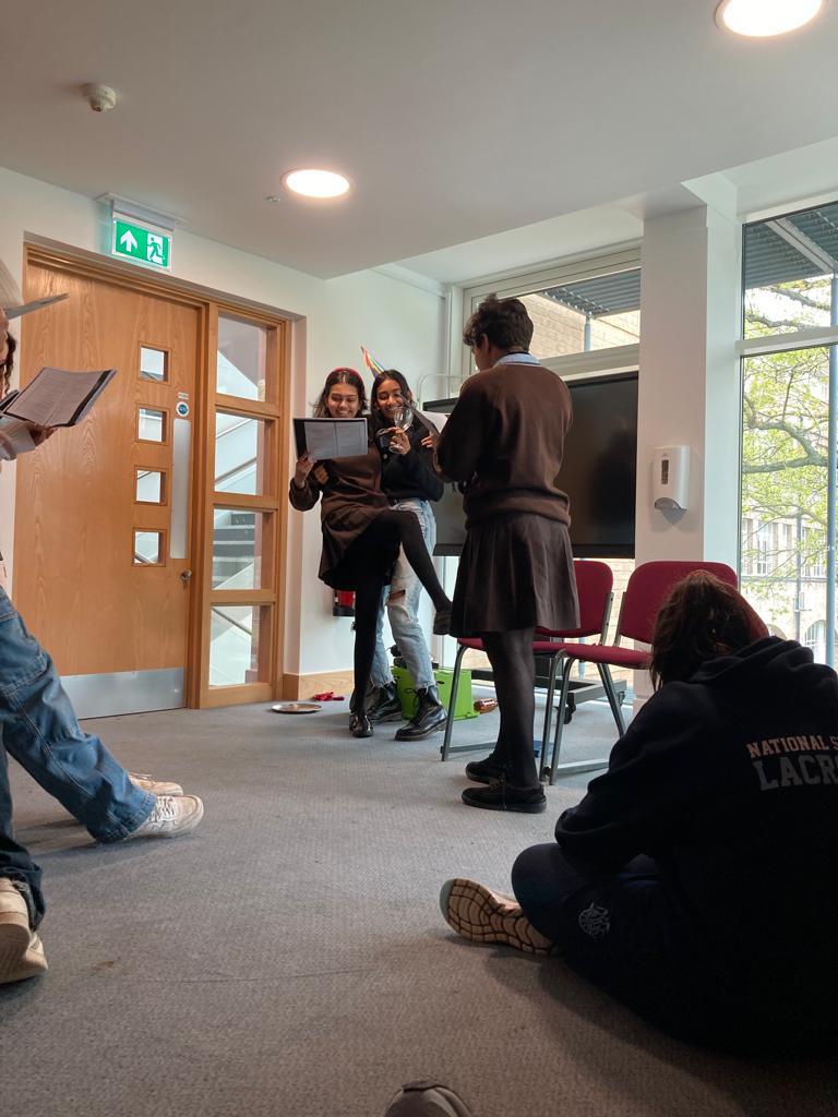This half term, PA Soc started Scripts and Snacks, a new theatre club for upper school. In the first session we read and acted out the wonderful ‘Play that Goes Wrong’ (one-act version, of course) by Mischief Theatre, and I can confidently say that it was the most fun society session I have ever been to. Between the delicious snacks, hilarious script and passionate acting, I don’t think it could have gone any better. As a group, we performed a slightly confusing murder mystery, including a dramatic death scene and an extremely awkward love affair, full of laughter, odd props, missing sound cues and an extremely dedicated dead body (whom we kept accidentally stepping on). This all happened in the cosy first-floor Athenian Café corridor, and moving to the white studio for the second session only provided more space for more fun. PA Soc is perfect for anyone looking to laugh, snack and act with a hilarious and dramatic group of individuals. Every week, a script is chosen, parts are dished out, along with a hastily gathered selection of costumes and props from the department's various cupboard, and of course someone volunteers to do the honours of reading out the stage directions. And don’t worry if spontaneous acting isn’t your thing – it is perfectly fine to grab some lunch, enjoy some chocolate, and watch the drama unfold! - Tara