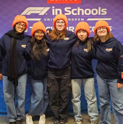 Students also took part in the F1 in Schools competition, entering both the Development and Professional classes. The work required a careful balance of design, testing, and presentation. Teams prepared engineering portfolios, built model cars, and refined branding material to meet the expectations of the judges. The process gave students insight into how different strands of a project come together in a professional context.