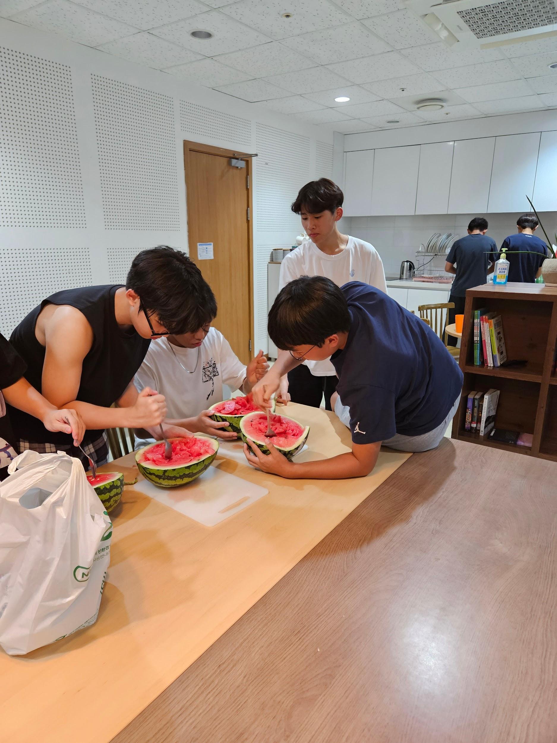 To be honest, while we were cooking, it was very chaotic. We weredroppingsomemeat,shoutingateachother,lookingfor more kitchen towels, and trying to cook as fast as possible. It wasbothtiringandfunatthesametime.Thatmemorywasthe typeofmemorythatcanonlybemadeinaboardinghouse,a memory of using teamwork to achieve goals, helping each otherwhilewearingabigsmileonourfaces.AftertheBBQ,we had a watermelon hwachae and ended our BBQ night with refreshingwatermelonsoda.SinceIjoinedAewolwhenIwasin year 8 ,these memories were one of my best moments that alwayshelpedmetoenjoymyschoollife,whichiswhymygoal for this year is to give other students moments that I had so theycouldrememberAewolastheirhappiestmomentsintheir schoollife,justlikeme.