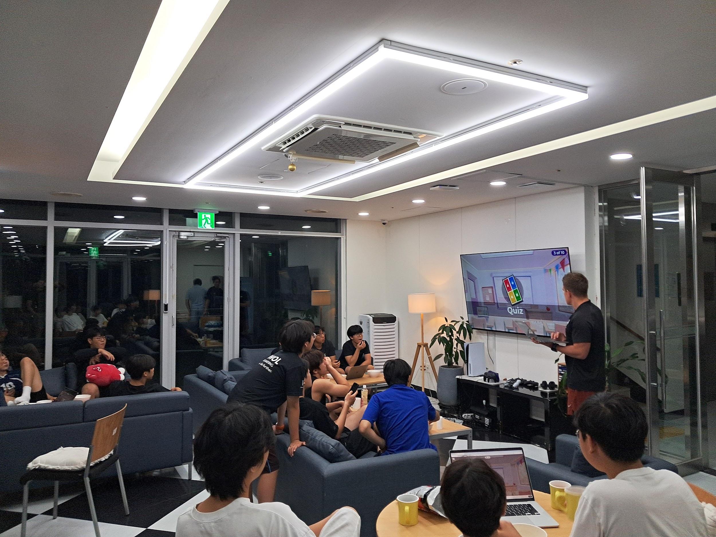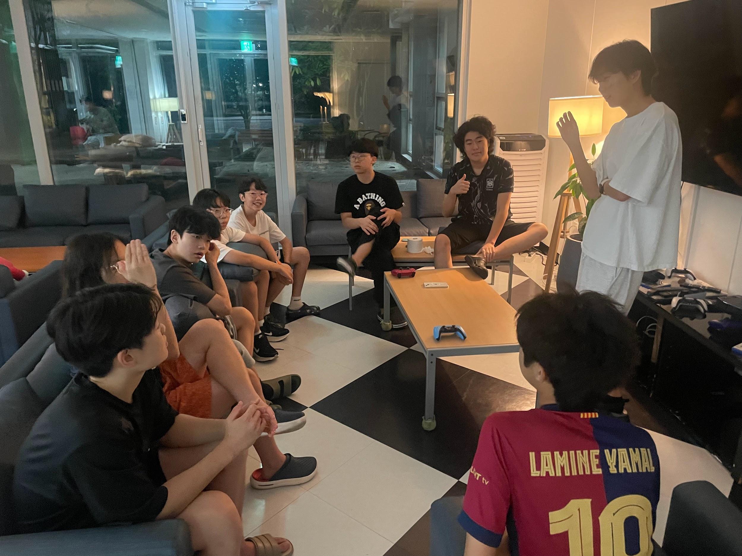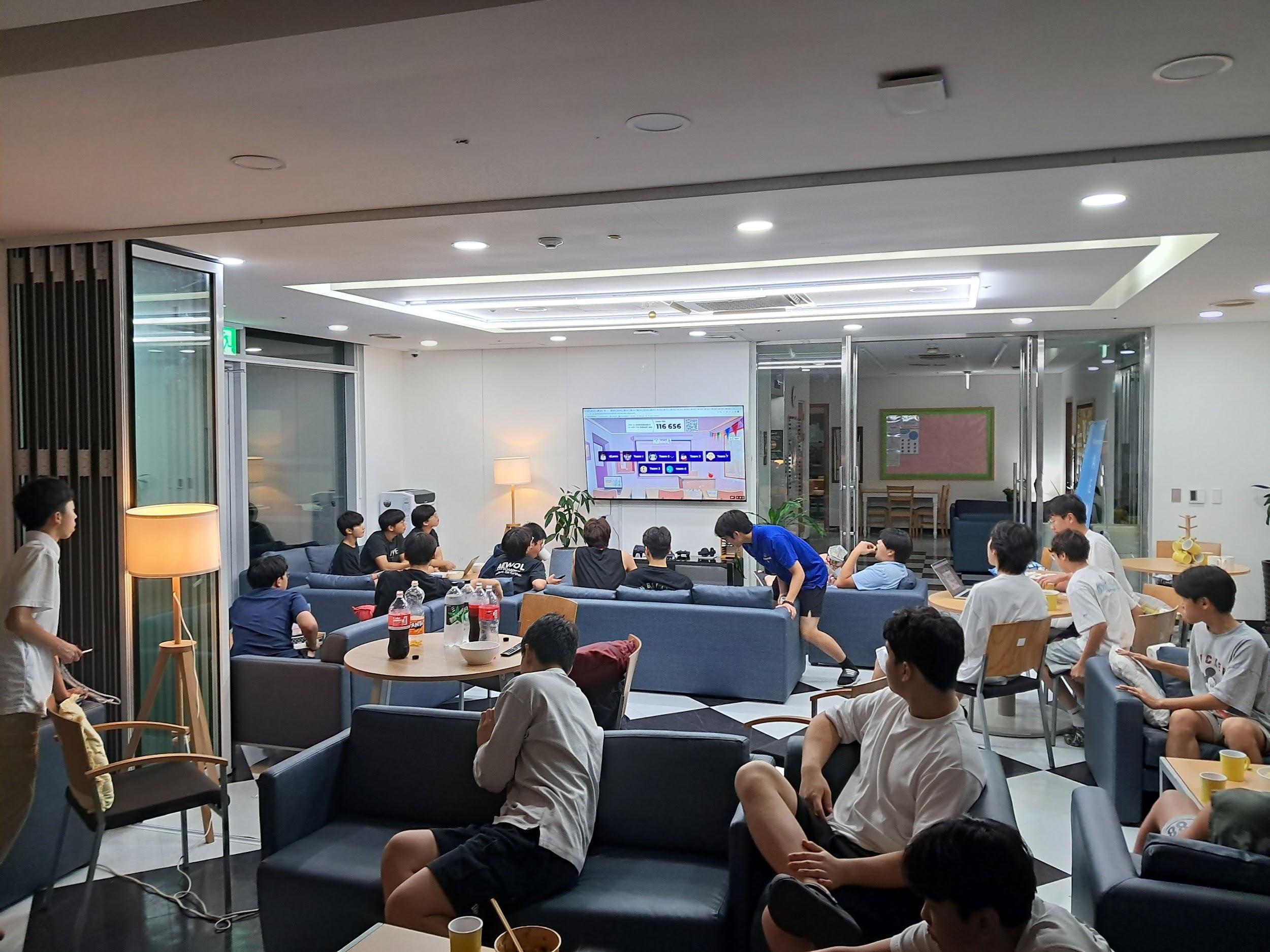Afewweeksago,myfriendsandIwere abletowatchasportsmatchontheTV onthefirstfloor.Studentswhowanted towatchthesportsmatchallgathered aroundonthesofa,andwewatcheda match between Liverpool FC and Everton FC. Also, we watched an F1 race. It was a great opportunity to communicate with the other year groupstudentsandhavefuntogether. Itwasaveryengagingactivitytomake everyonegetclosetoeachother.Istill canʼt forget that activity, and it was a veryimpressivenight.