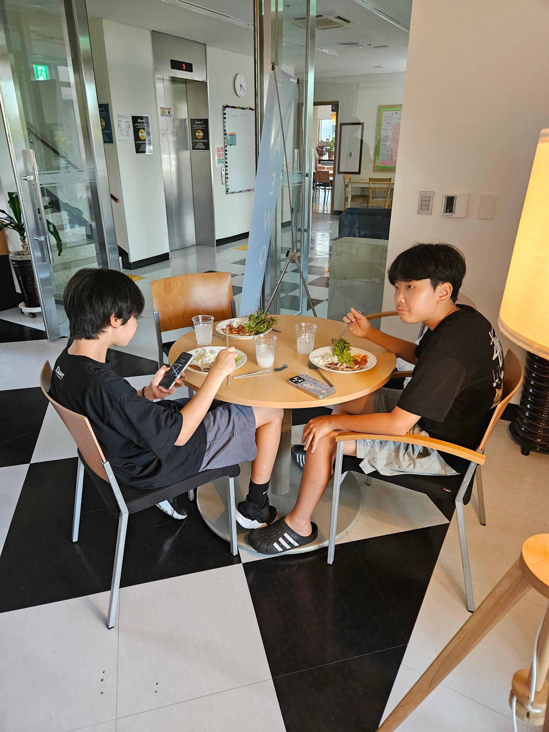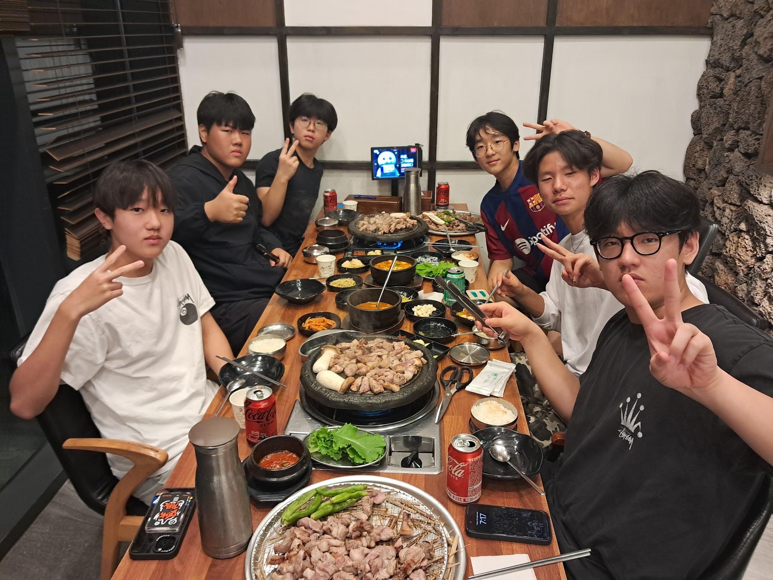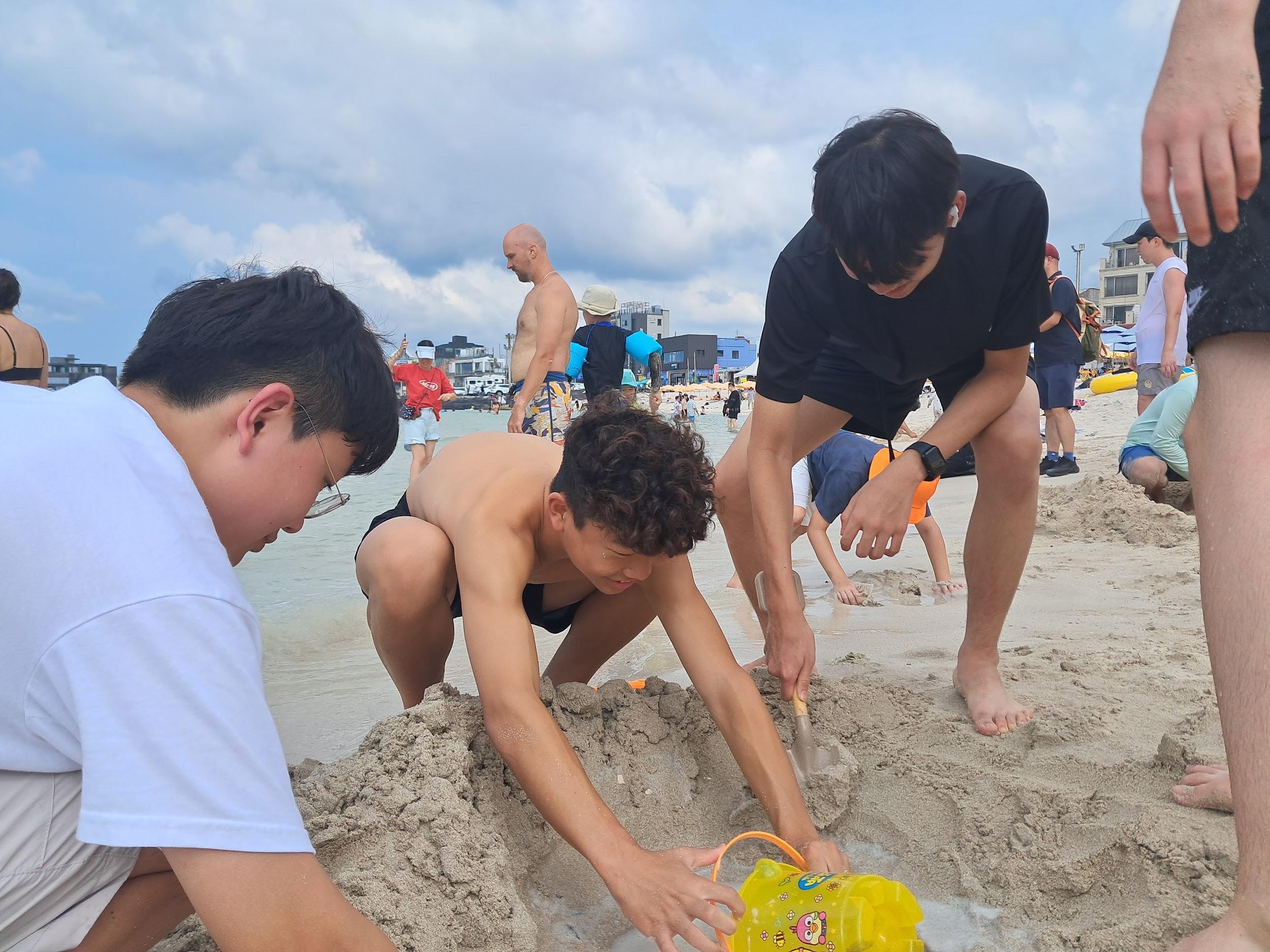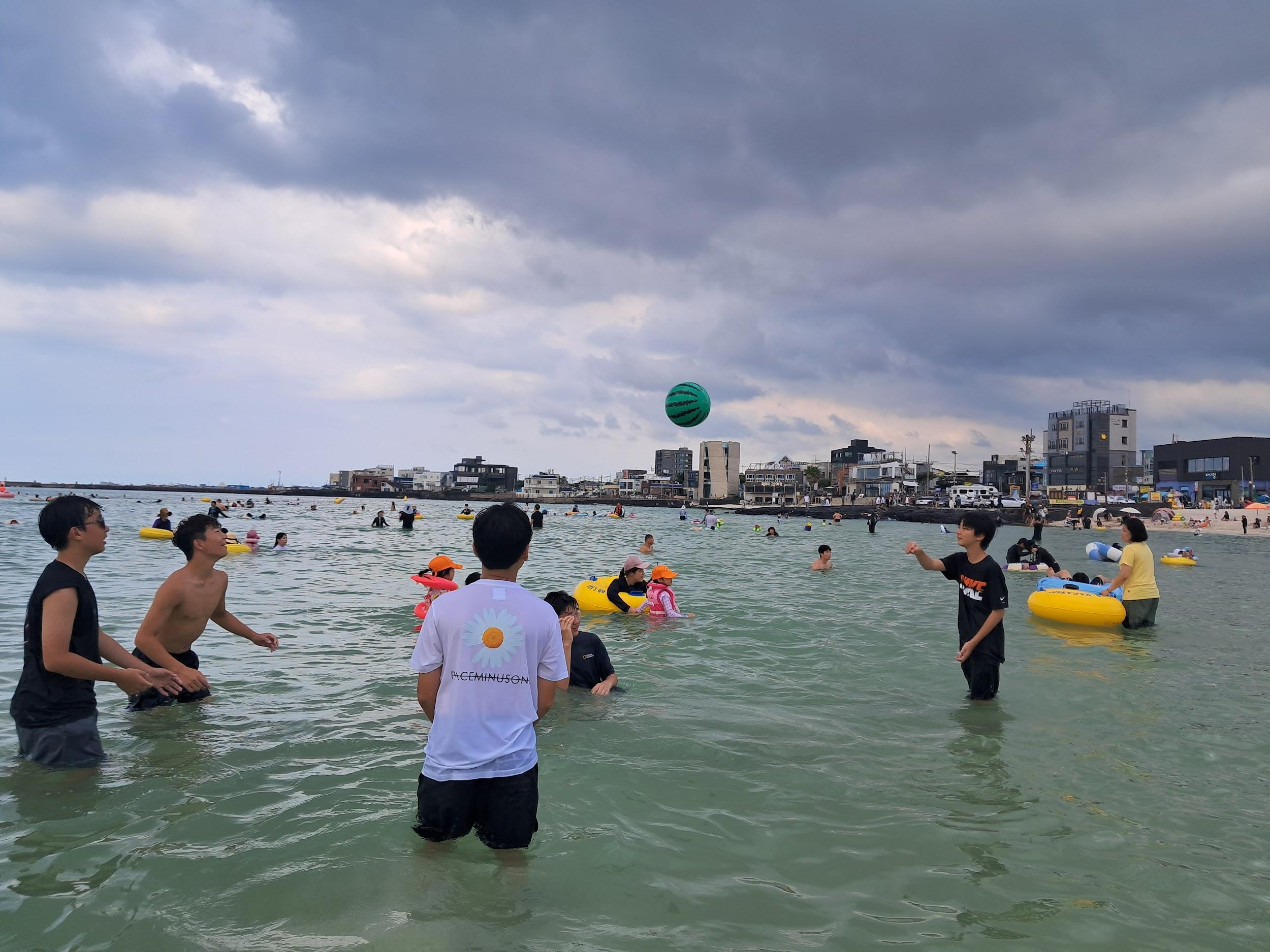 On August 30th, we all went together to Hyeopjae Beach with our friends. It was the first trip after we came back to Aewol and school. We enjoyed a beef barbecue, sweet drinks,andlotsofotherdelicioussidedishes. After our meal, lots of the students went into the water and enjoyed the refreshing surf. By theendoftheday,wewereallwet,coveredin sand, and exhausted. The Aewol staff bought us ice cream. Lots of students, including us, bought a ball and played beach volleyball. Luckily, it rained when we finished our beach day,andlotsofpeoplegotwetfromtherain.It wasthebestbeachdaywithmyfriends.