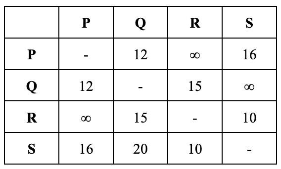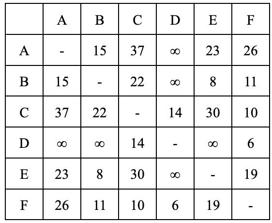 Afterthefourthiteration,wegetthefinaldistance androutetablewhichisshownunderneath.