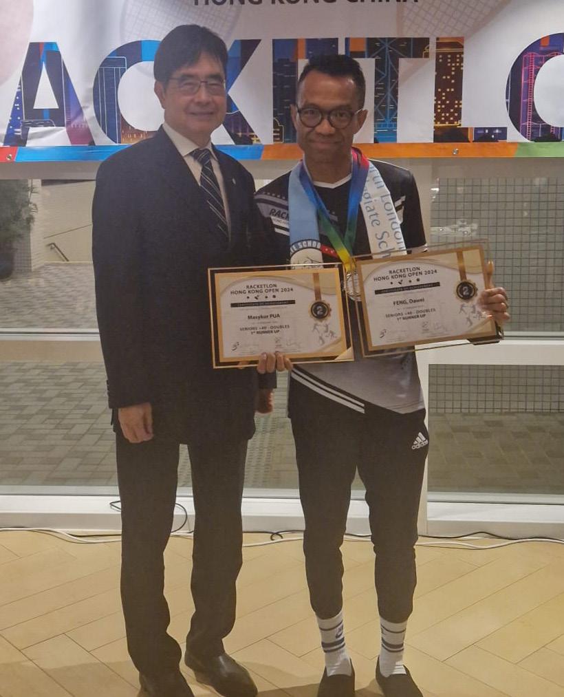 热烈祝贺我们的Mr. Pua在近期香港四拍公开赛上与他的双打搭档 - 来自新加坡的 Dawei Feng,共同荣获男子 40岁以上组银牌。