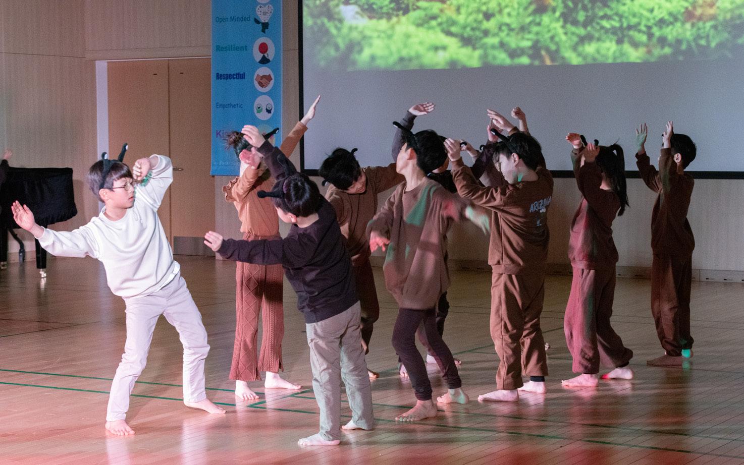 近期,3 年级学生一直在从我们身边的各种昆虫中汲取灵感,探索动作的奥秘。4 年级学生则开始学习使用道具,根据我们在济州体验到的四季,探索了各种主 题。他们一起努力呈现季节性体验,向一群热情的家长观众展示他们的课程内 容。
