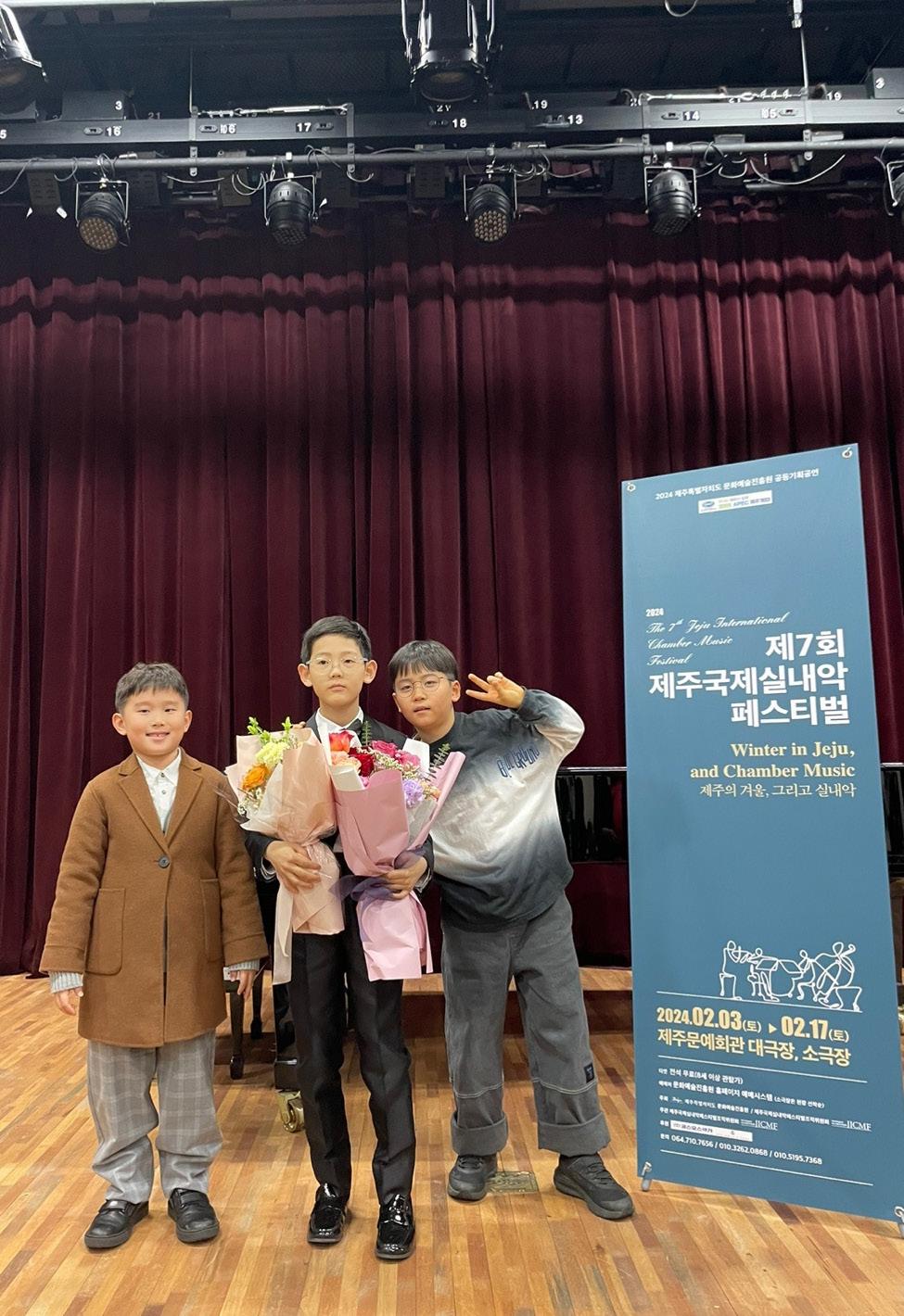 3年级学生Taeyang (Sage Lee 分享了他参加音乐节的经历。 “我参加了第七届 济州国际室内乐节获奖者音乐会II。为了参加这次音乐会,我需要先经过各种程 序。终于,音乐会的日子到来了。