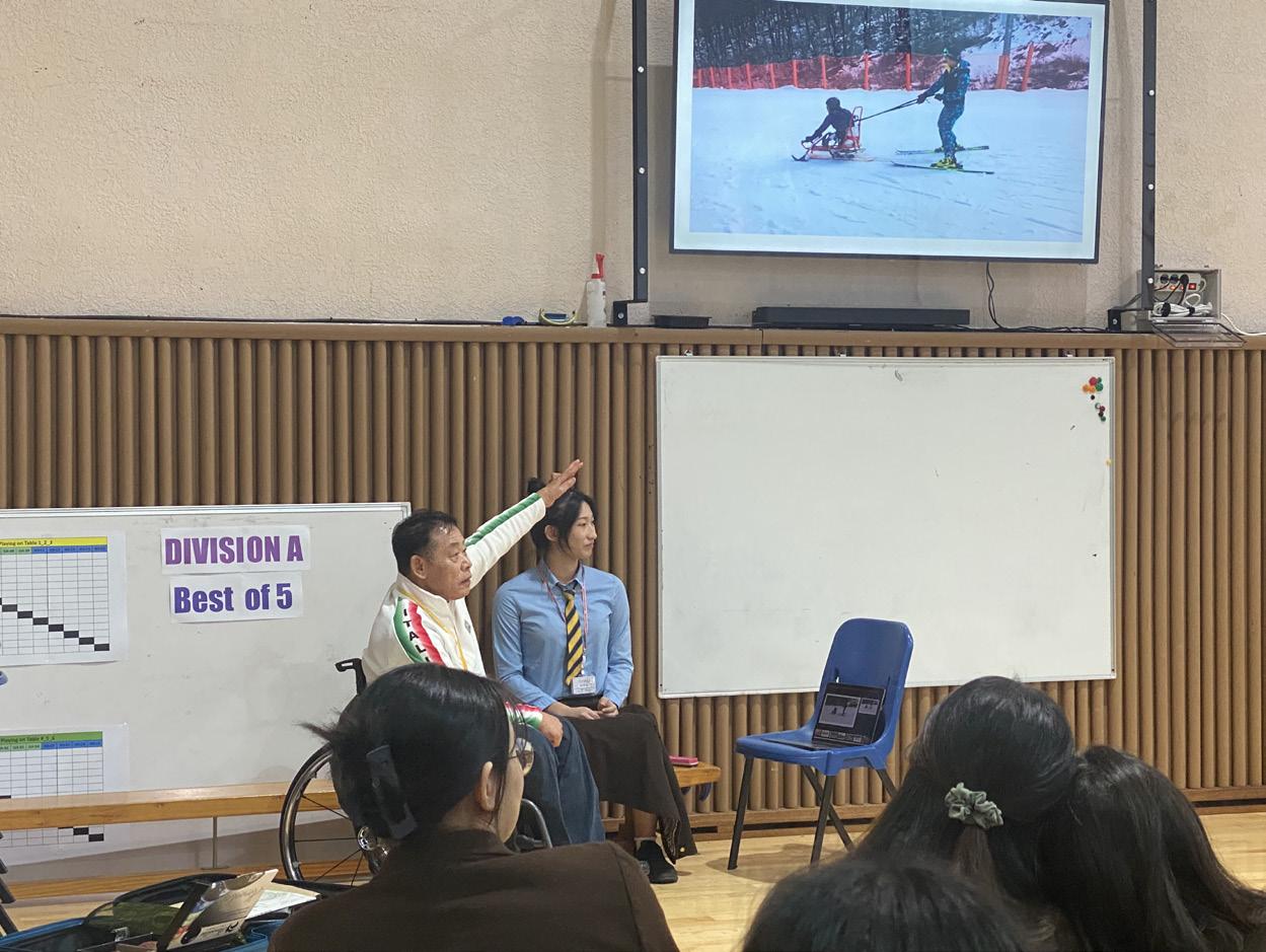 在体育强化周里,我们荣幸地欢迎Yoon Kun Kim来到我们校园,学生们有机会聆 听他的励志故事,并提出问题。