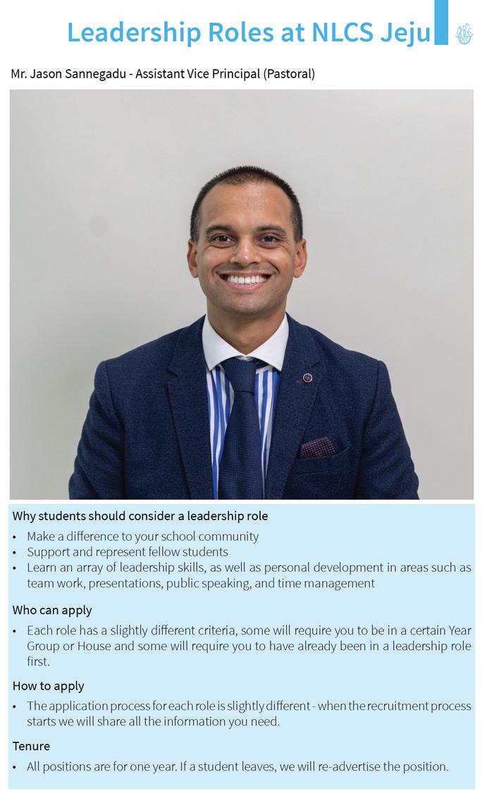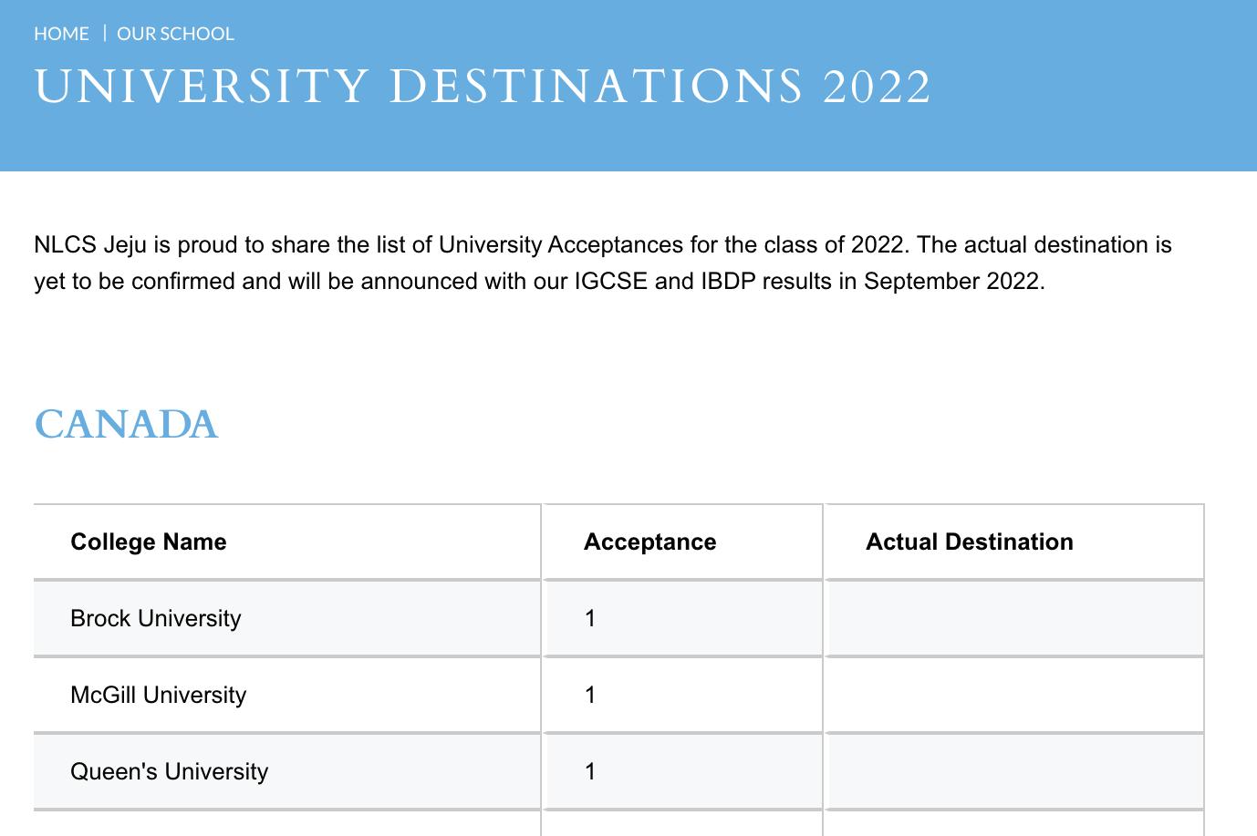 Other news STUDY INTERNATIONAL 请查看Study International网站上的精彩文章,其中重点介绍了为什么在北伦敦 济州寄宿是我们学生的绝佳选择。感谢Ms. Claire Washington (舍监兼情感指导 顾问), Danie Gondorf 和 Elena Shin的贡献。 JUNIOR AND SENIOR SCHOOL INFORMATION SESSIONS 本周,我们很高兴地邀请了许多有意申请本校的学生和家长到校--这些家庭听取 了主要教职员的信息介绍,在小八和高中学生会的带领下参观了学校。参观结束 后,他们有机会与不同部门的老师们见面,了解更多关于我们的IB文凭、体育、 音乐、课外活动、情感咨询、大学申请指导和家长联络团队方面的情况。 如果您认识任何正为孩子考 虑北伦敦教育的家长,请 鼓励他们和招生团队联系 (admissions@nlcsjeju.kr) , 我们可以安排私人访校。目前 我们招收2023年8月入学的3年 级(含)以上学生。学前班到 2年级的招生将于2023年1月开 始。