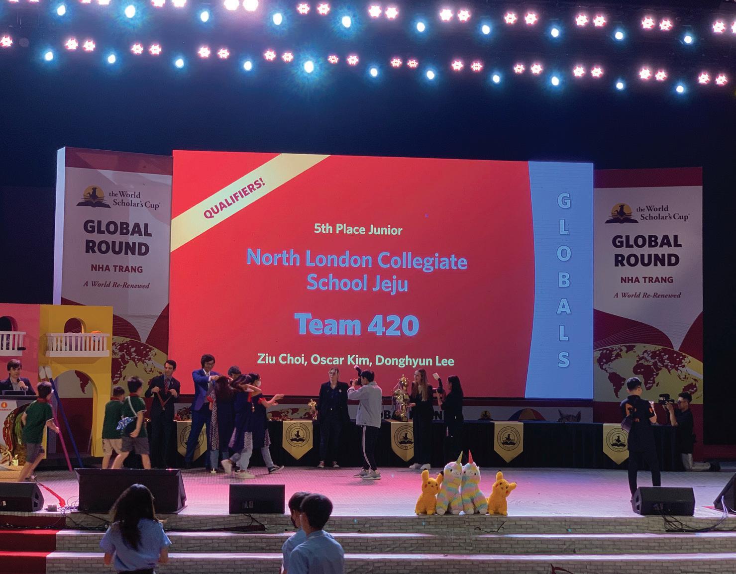 NLCS Jeju Awards and Achievements JEJU CHILDREN PARTICIPATION - COMMISSION MEMBER WSC GLOBAL ROUND - JUNIOR 祝贺9年级的 Yeongjin (YJ) Yoo 被任命 为济州岛儿童参议委员会成员。他的职 责时确保儿童的意见被反映到政策中, 并让儿童了解自己的权利。此外,他还 担任了全国儿童代表团济州道的代表。 Ziu Choi, Dabin (Oscar) Kim, Donghyun Lee (Y9)参加了在越南芽庄岛举行的世界学者 杯全球小型回合赛。今年的主题是“一 个重启的世界”。他们表现优异,排名 第五,获得进入冠军赛的资格。