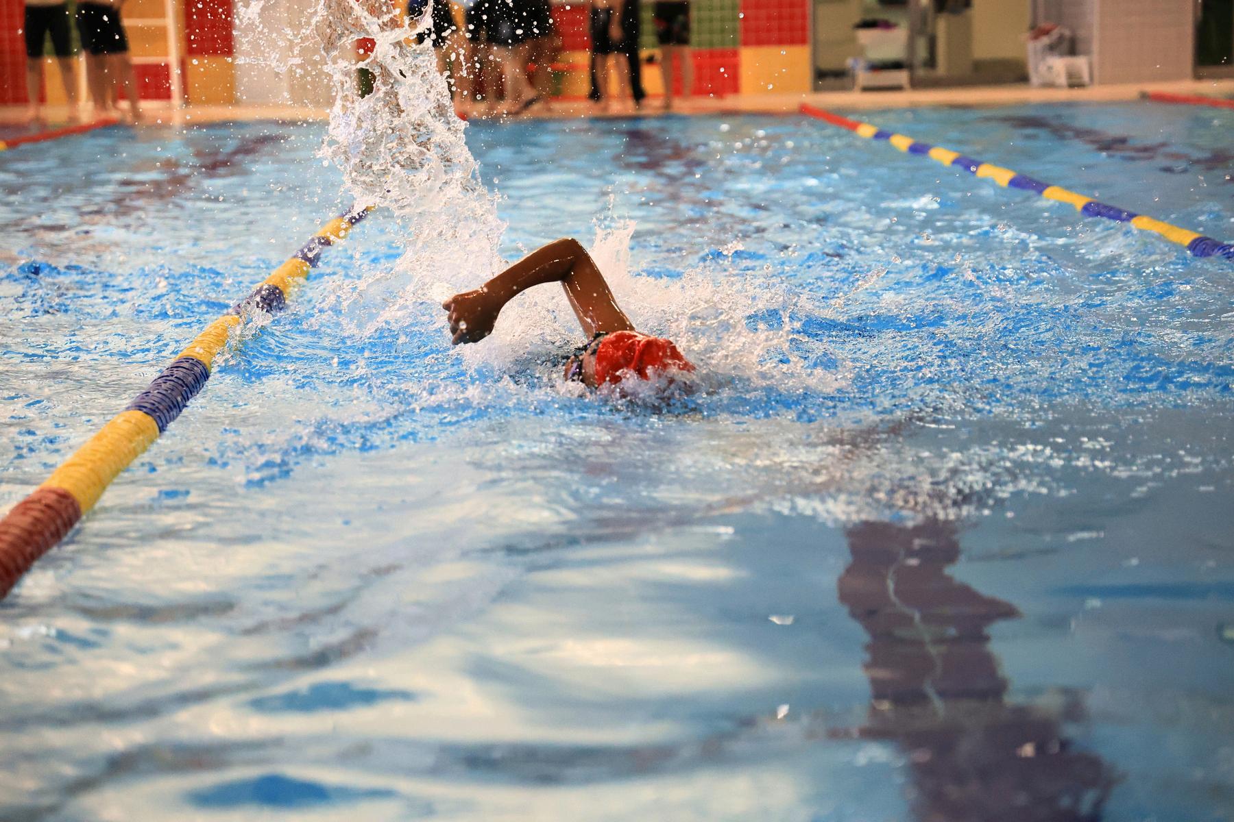 The frigid water seemed to freeze my veins as I plunged into the icy depths of the abyss below Immediately, my body convulsed, shying away from the cold as I gasped, breaking the surface. Ready, set, go! As soon as the word ‘ go ’ was uttered, the once calm water was now alive with writhing bodies and furiously moving legs, pinwheeling arms. I dived down into the icy waves once again yet the adrenaline coursing through my veins soon provided immunity from the biting cold. My lungs began to burn as I glided, a far cry from a professional swimmer but still moving quite quickly through the water. Then, a grateful gasp of air. As soon as I emerged onto the water, I was overwhelmed by a cascade of shouts, cheers, and whoops all bouncing and echoing around the swimming pool, everyone cheering for their designated house. Soon, I fell into a steady rhythm. Down, kick, up, breath. Over and over again. Until, far ahead I spotted the place in which I had started. With a final burst of energy, I wrestled with the water A few metres away, less than a metre Then, the whole pool erupted into cheers as a mob of reds screamed, cheered, and hollered.