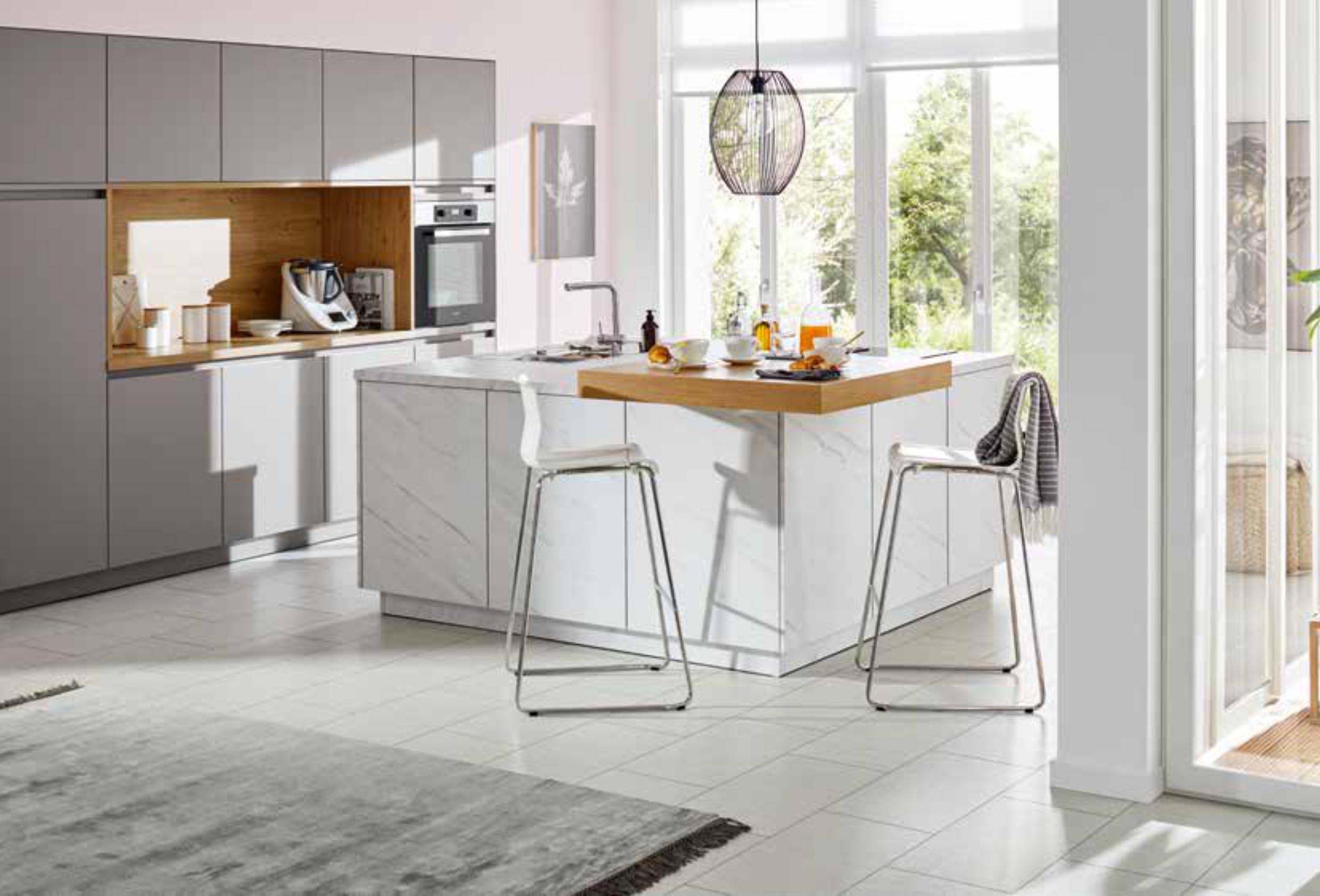 und Verarbeitung in Dekor, Hochglanz, Furnier oder Massivholz jeweils anders umzugehen. Das gilt auch für die unterschiedlichen Materialien der Arbeitsplatten.