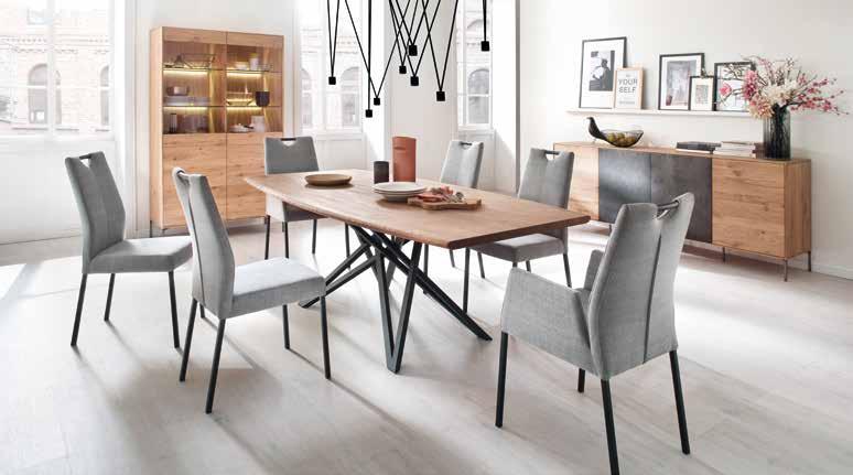 1. System-Esstisch Platte: Wildeiche massiv bianco, 2,6 cm stark mit Schweizer Kante, Gestell: Stahl schwarz, 180 x 100 cm: | 1.048 - | Passende Ansteckplatten in 50 x 100 cm erhältlich: je | 268.- |