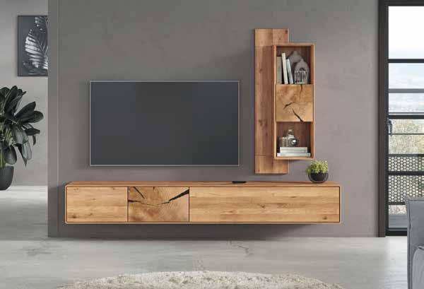 6. Hänge-TV-/Lowboard mit 1 Klappe, 1 offenen Fach und 1 Schublade, Rückwand sägerau, inkl. Beleuchtung und Trafo,