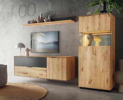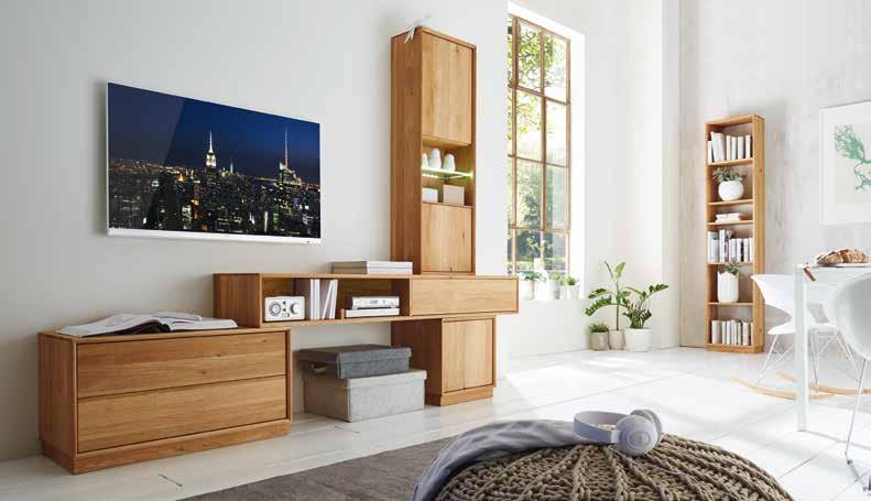 3. Wandregal Wildeiche geölt, sichtbare Rückwand sandgestrahlt, mit 4 Fachböden und LED-Beleuchtung, B/H/T: 30 x 135 x 33 cm: | 689.- |