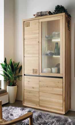 3. Vitrine Wildeiche massiv bianco, mit 1 Glastür und 1 Holztür sowie 2 Glasböden und 1 Holzboden, inkl. Glaskantenbeleuchtung, B/H/T: 62 x 185 x 40 cm: | 1.478.- | ohne Glaskantenbeleuchtung: | 1.398.- |