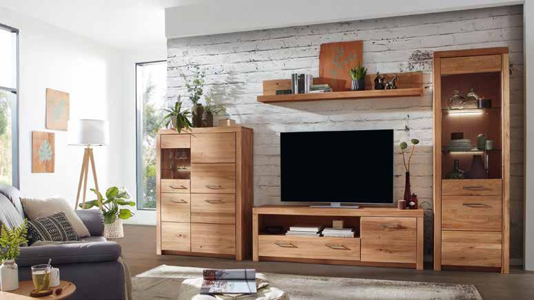 Wildeiche massiv bianco, mit 2 Holztüren und 1 Glastür sowie 3 Holzböden und 3 Glasböden, inkl. Glaskantenbeleuchtung, B/H/T: 116 x 160 x 40 cm: | 2.098.- | ohne Glaskantenbeleuchtung: | 1.998.- | Wildeiche massiv bianco