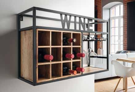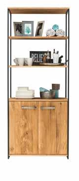 5. Highboard, 1-türig Holztür mit Glaseinsatz, mit 1 Holzboden hinter der Tür, Rückwand sägerau, inkl. Beleuchtung und Trafo, mit schwarzem Metallgestell,