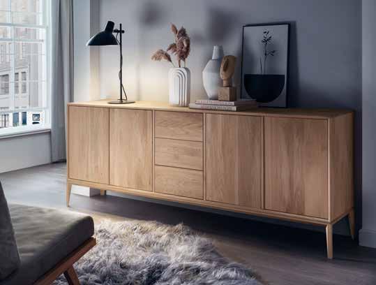 Front Wildeiche, Korpus Eiche massiv, geölt. Holzfüße in schwarz.