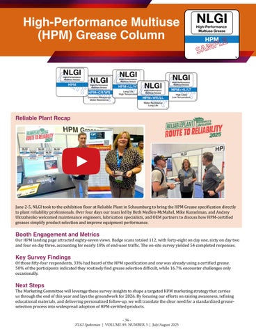 June 2-5, NLGI took to the exhibition floor at Reliable Plant in Schaumburg to bring the HPM Grease specification directly to plant reliability professionals. Over four days our team led by Beth Medlen-McMahel, Mike Kunselman, and Andrey Ukrazhenko welcomed maintenance engineers, lubrication specialists, and OEM partners to discuss how HPM-certified greases simplify product selection and improve equipment performance.
