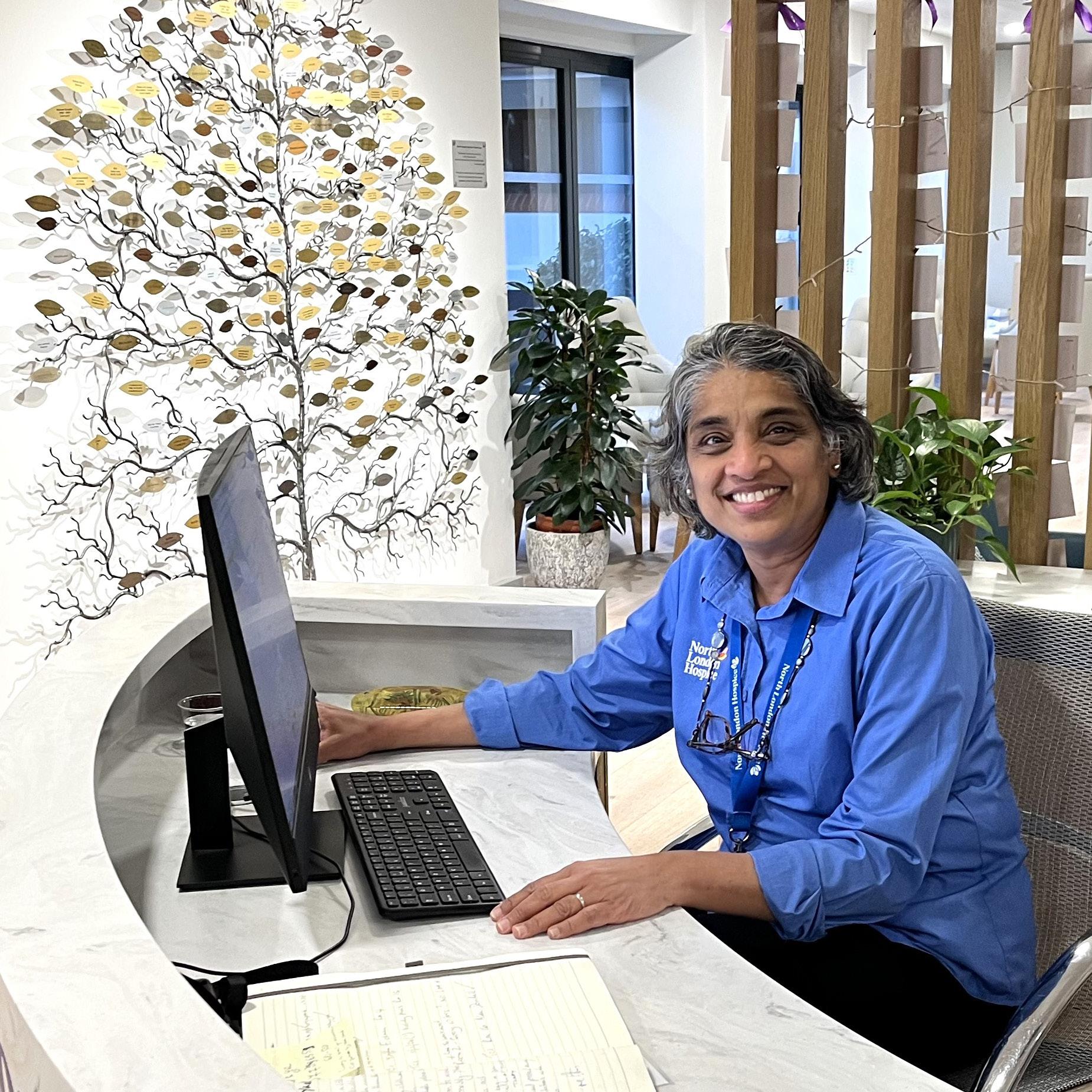 We are the face of the hospice for many in our community, and they will often come in keen to share their stories of their own loved ones who have been cared for here. Welcoming them with a friendly face and offering a listening ear is so important. Just hearing them and offering empathy is so healing. There is one gentleman who comes in regularly and now he always greets me with a big hug.