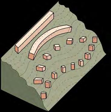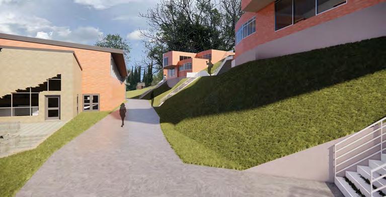 WITH THE UNIVERSITY OF URBINO’S NATURAL LANDSCAPE, THIS DESIGN EMBRACES THE SITE’S DISTINGUISHING FEATURES AND SURROUNDING ELEMENTS; ALLOWING US TO ADAPT ITS NATURAL PATHS, AND EXTEND CONNECTIONS TO THE PROGRAM’S CENTRAL PLAZA. THE LAYOUT OF THE MODULES MELD WITH THE SURROUNDINGS, TAKING THE SHAPE OF A VERTEBRAE AND SERVING AS THE CONNECTING STRUCTURE OF THE INHABITANTS.
