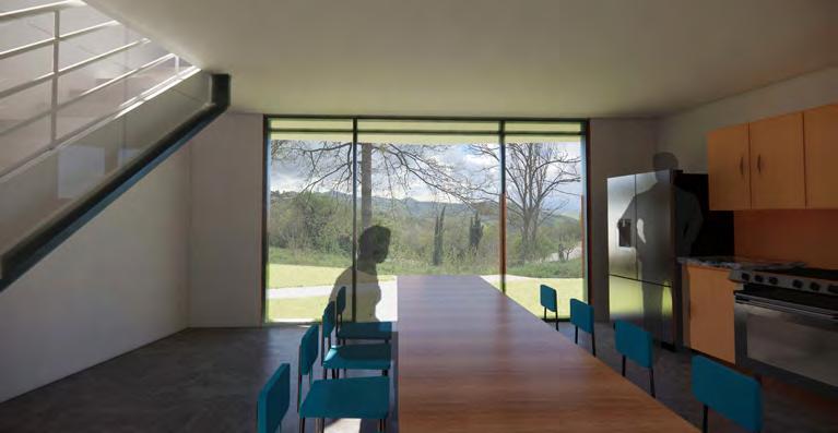 MY CONTRIBUTIONS (LABELED IN RED) INVOLVED RESEARCH ON THE IL COLLE COLLEGE, COLLABORATING TO DEVELOP THE FORM AND FLOOR PLAN OF THE FINAL DORMITORY MODULE, DESIGNING THE CENTRAL PAVILION, AND PHOTOSHOPPING THE FINAL RENDERS.